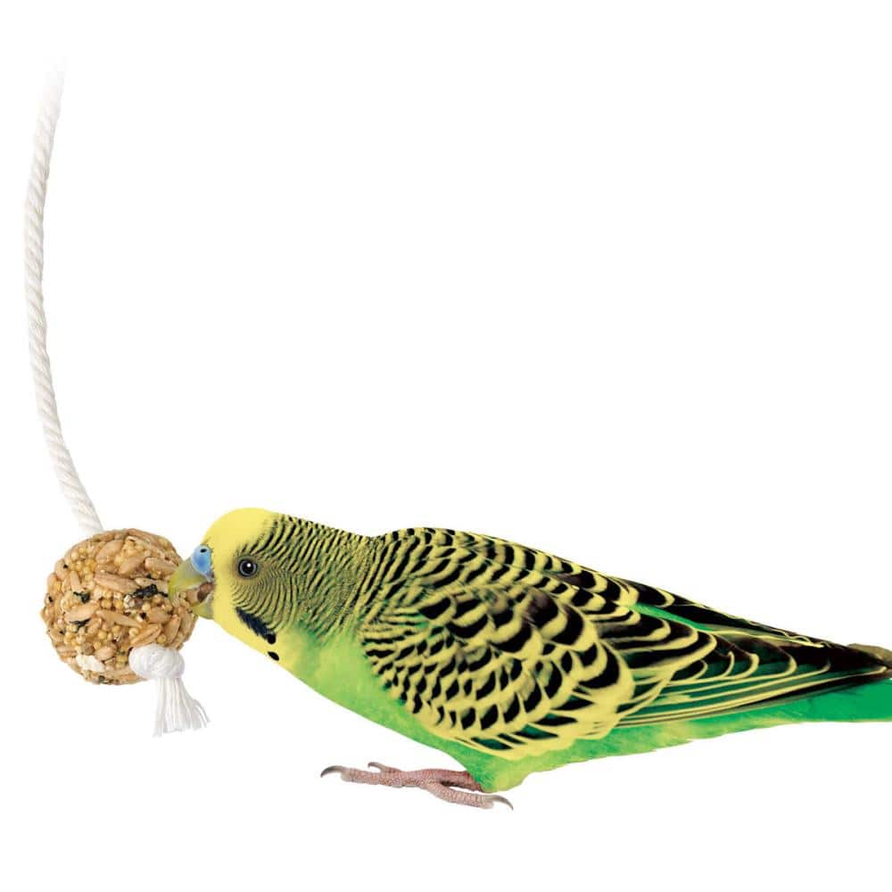 商品の利用(調理)方法:●ロープを使ってケージやとまり木に結んで吊るすことができます。●ロープの先をほどいて外すと、転がして遊ぶおもちゃにすることもできます。放鳥時のコミュニケーションにぴったりです。●与える量はペットの年齢・体重・運動量・体調などにあわせて様子をみながら調整してください。
