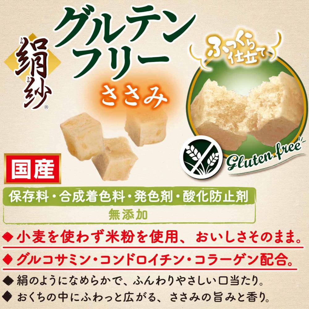 ●小麦粉を使わず米粉を使用、おいしさそのまま。 ●グルコサミン・コンドロイチン・コラーゲン配合。 ●絹のようになめらかで、ふんわりやさしい口当たり。 ●保存料・合成着色料・発色剤・酸化防止剤を使用していません。