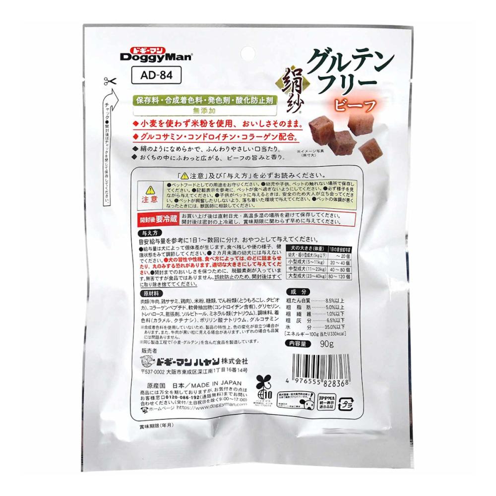 ●小麦粉を使わず米粉を使用、おいしさそのまま。 ●グルコサミン・コンドロイチン・コラーゲン配合。 ●絹のようになめらかで、ふんわりやさしい口当たり。 ●おくちの中にふわっと広がる、ビーフの旨みと香り。 ●保存料・合成着色料・発色剤・酸化防止剤を使用していません。