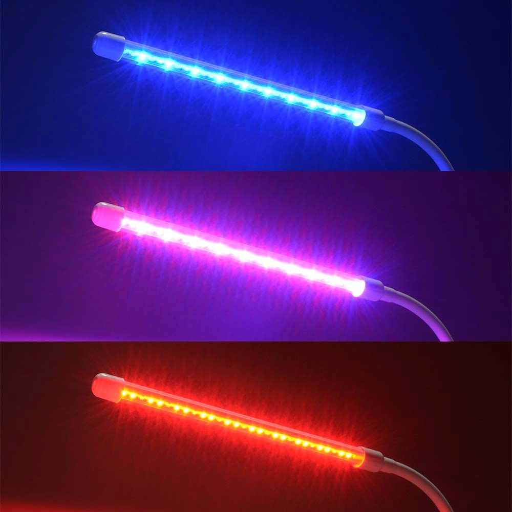 ●植物の光合成に必要な波長の光を放出するライト ●太陽光に近い波長で室内でも植物育成ができます ●「赤色+青色」「赤色」「青色」の調色機能付き ●10段階調光機能付き ●3段階タイマー機能付き(3/9/12時間) ●フレキシブルアームでセード調整が自由自在 ●USB電源式 ※USBアダプター別売
