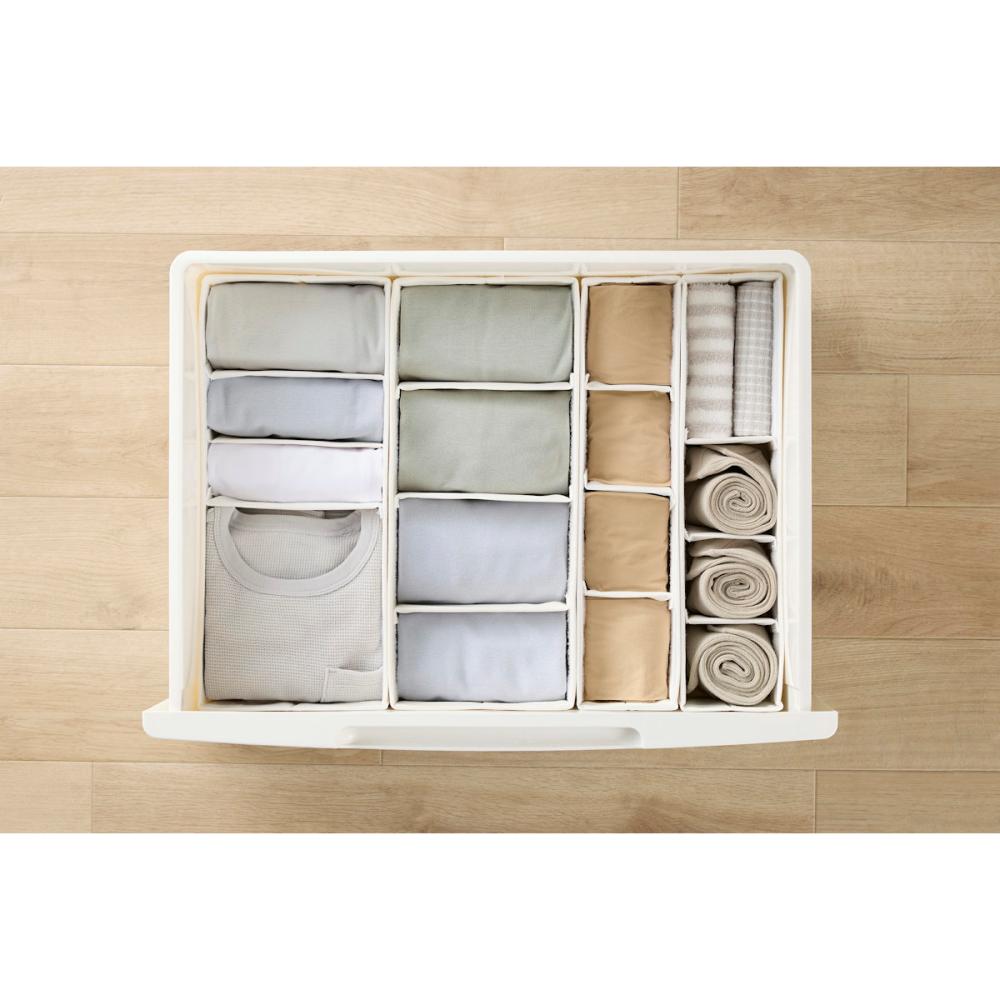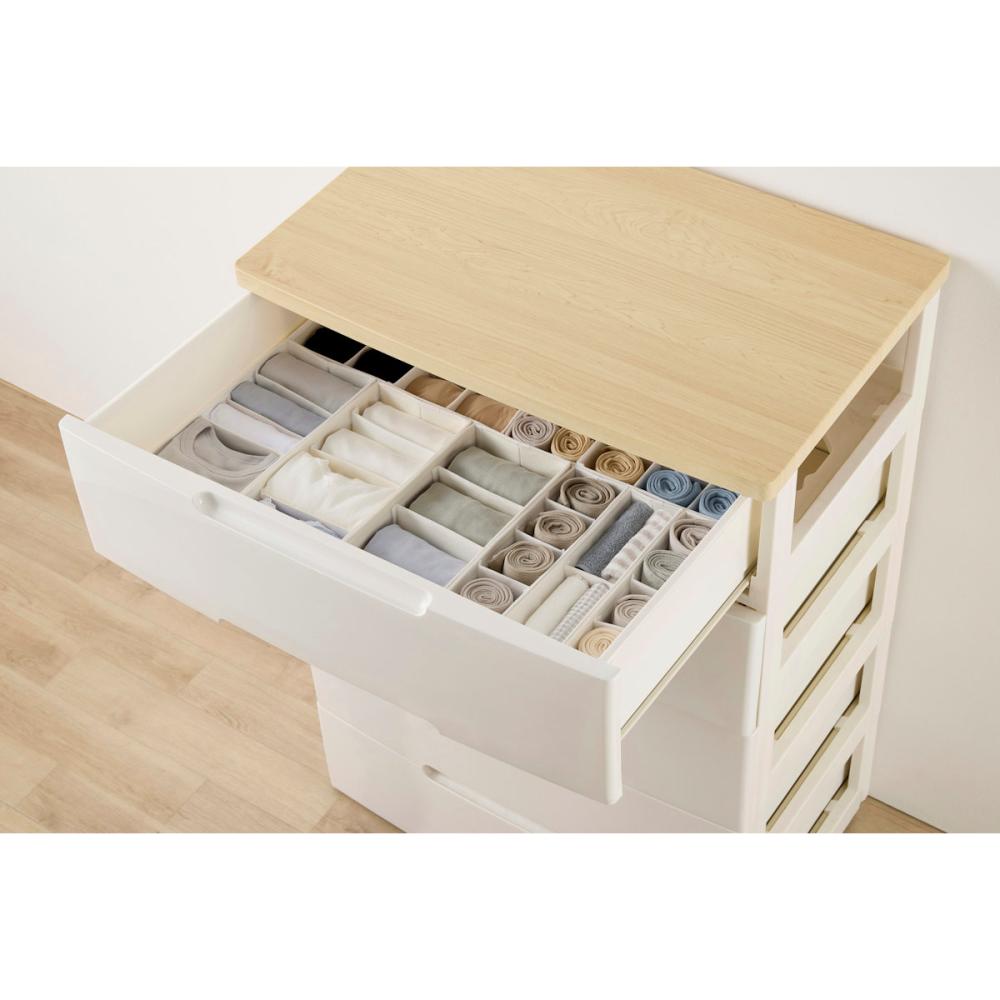 ■不織布なので、通気性がよく、タンスなどの収納も安心です。 ■芯材が入った仕切りを使用しています。 ■仕切りが面ファスナーになっているので、好きな幅にカスタムできます。