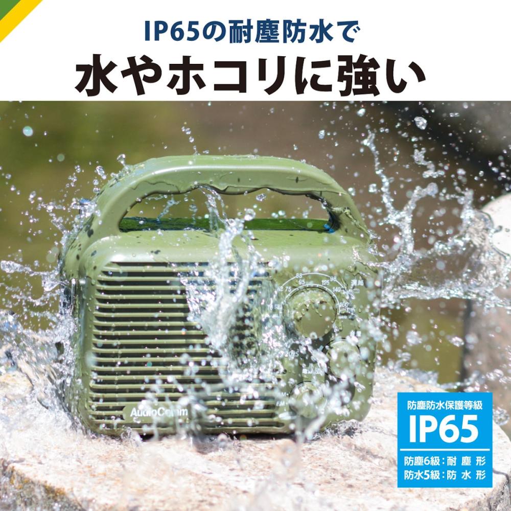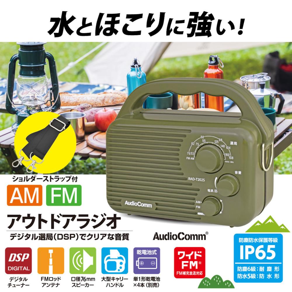 ■ 受信周波数:AM…530-1605kHz、FM…76-108MHz ■ 電源:乾電池…DC6V 単1形乾電池×4本(別売) ■ 電池持続時間:FM受信/約150時間、AM受信/約150時間(アルカリ乾電池新品使用) ■ スピーカー:口径76mmモノラルスピーカー ■ 最大出力:1W ■ 防塵防水保護等級: 防塵6級(耐塵形)…粉塵が中に入らない 防水5級(防水形)…あらゆる方向からのノズルによる噴流水によっても有害な影響を及ぼしてはならない ■ 外形寸法:(約)幅168×高さ148×奥行78mm(突起物含まず) ■ 質量:約482g(乾電池含まず) ■ 付属品:ショルダーストラップ、取扱説明書、保証書