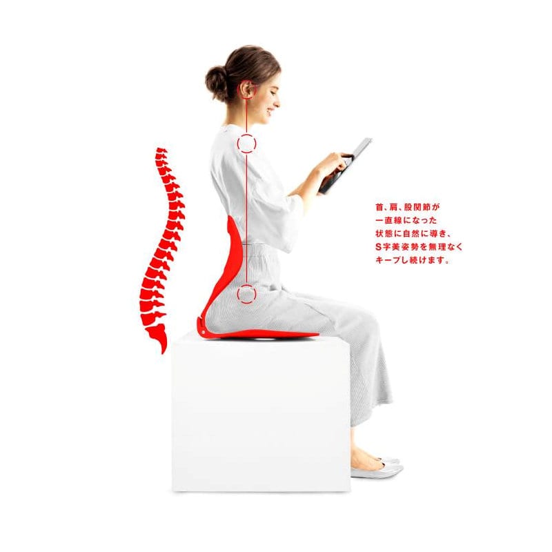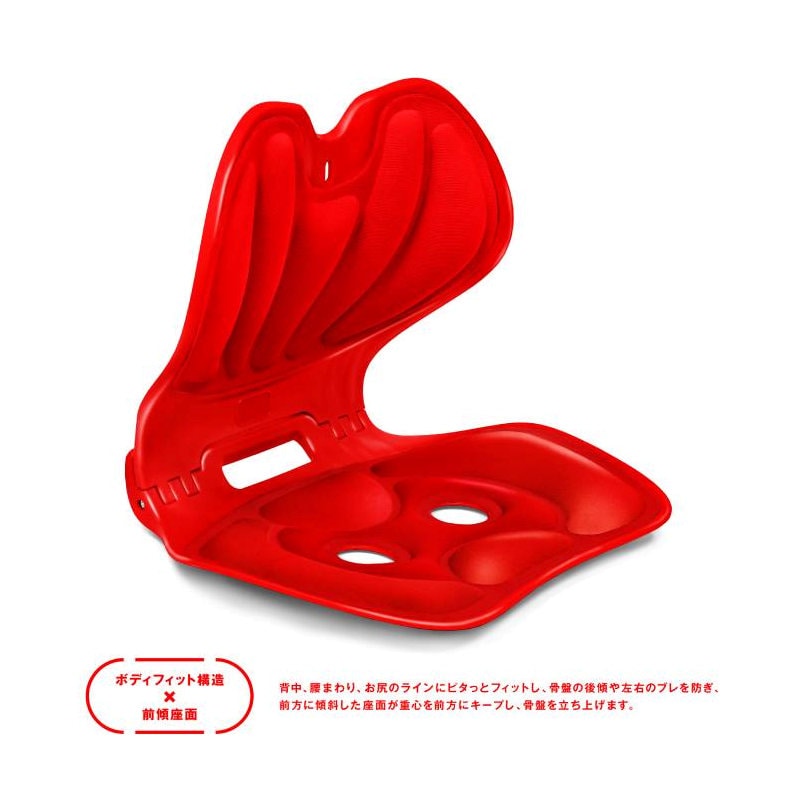 ・折りたためる美姿勢シートです。折り畳み時サイズ:約幅39×高さ15×奥行33cm ・ボディフィット構造×前傾座面 ・姿勢矯正、骨盤矯正、スタイルUP、体幹強化 ・背中、腰周り、お尻のラインにピタっとフィットし、骨盤の後傾や左右のブレを防ぎ、前方に傾斜した底面が重心を前方にキープし、骨盤を立ち上げます。