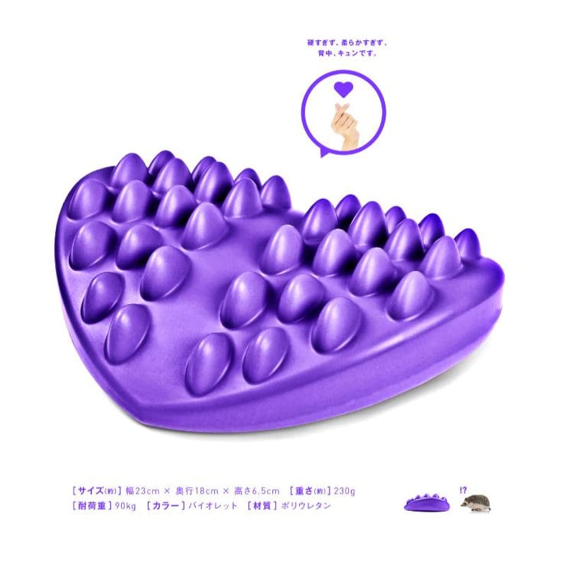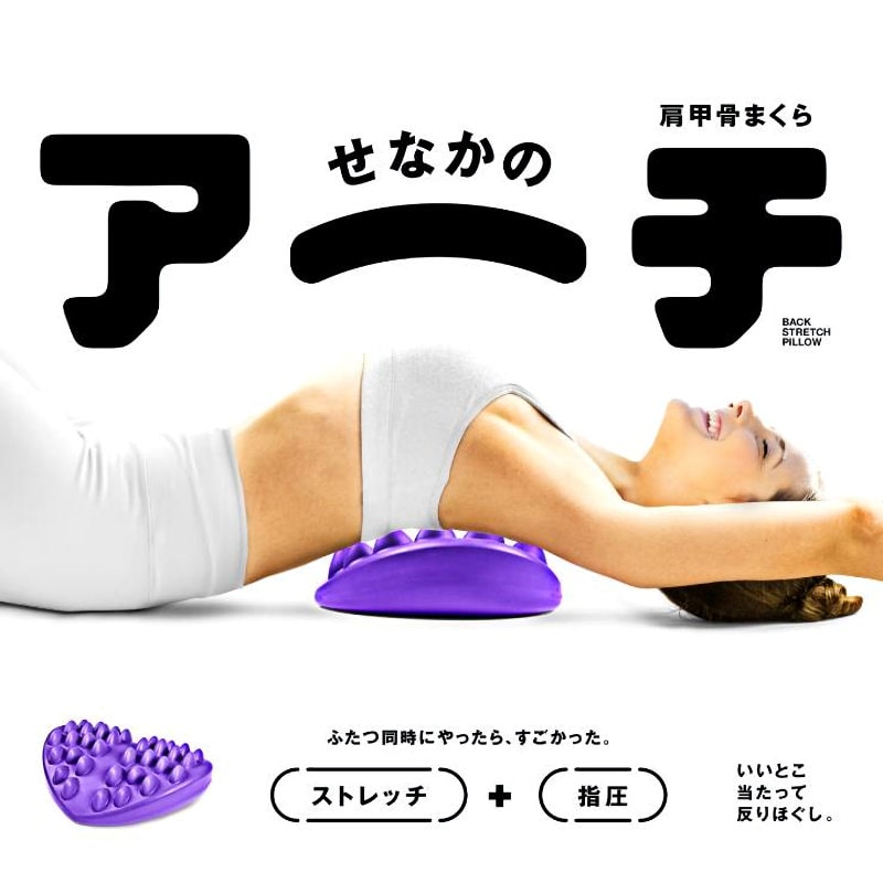 ・商品の上に横になり、背中のコリが気になる部位に押し当てる肩甲骨まくら(指圧代用器)です。 ・アーチと突起のダブル攻め。商品のアーチでストレッチ、突起で背中の指圧ができます。 ・硬すぎず、柔らかすぎず。丁度良い硬さで背中を刺激します。
