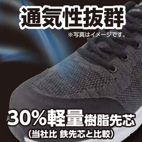 ●JIS L級相当軽量タイプ先芯(従来品に比べて30%軽量樹脂先芯)