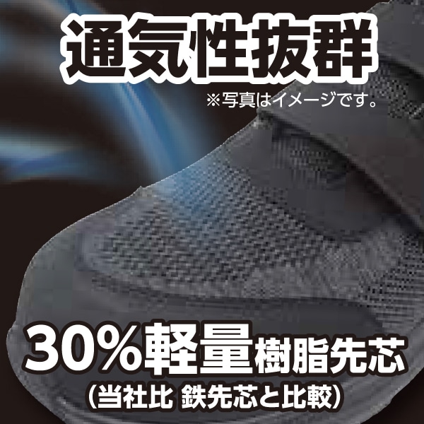 ●JIS L級相当軽量タイプ先芯(従来品に比べて30%軽量樹脂先芯)