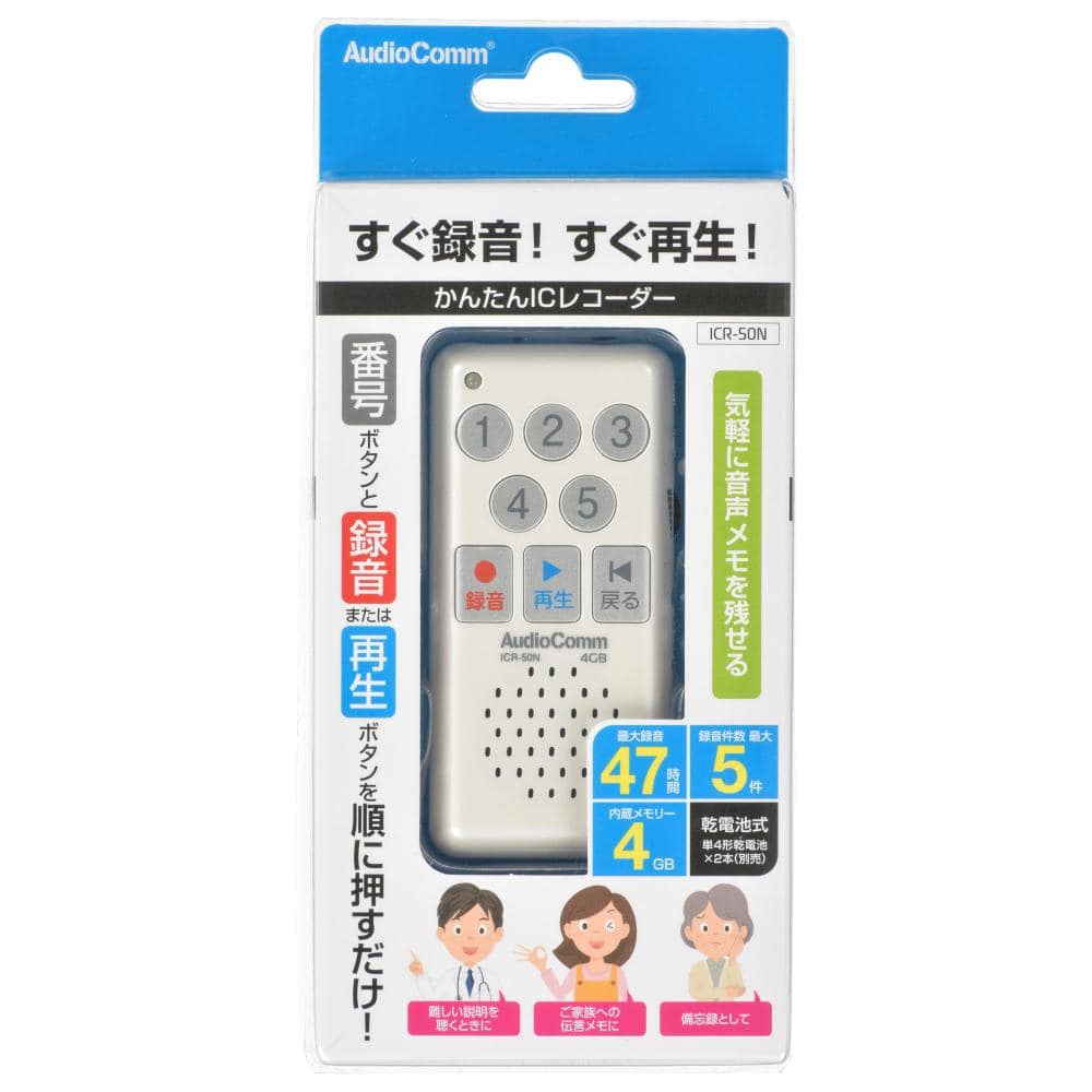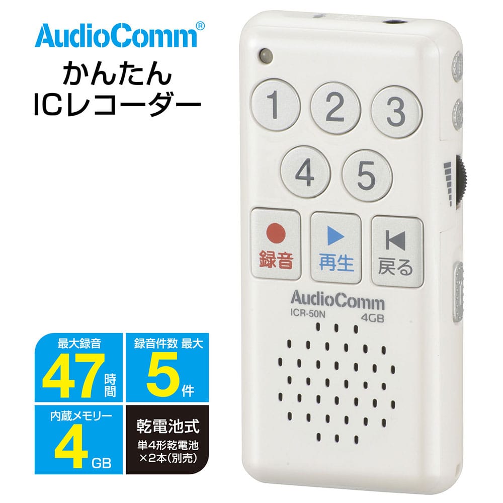 ■ 電源:DC3V(単4形乾電池×2本:別売) ■ 内蔵メモリー:4GB ■ 実用最大出力:スピーカー…600mW×1、イヤホン…6mW×2 ■ 録音方式:WAV ■ 録音可能時間:最大47時間(5つの番号ボタン合計) ■ 電池持続時間:録音…約48時間、再生…約40時間(イヤホン) 約20時間(スピーカー) ■ 接続端子:イヤホン…3.5mmミニジャック(モノラル出力)※イヤホン別売 ■ 外形寸法:幅45.5×高さ95.1×奥行19.1mm(突起物を除く) ■ 質量:約41g(乾電池を除く) ■ 付属品:保証書、取扱説明書