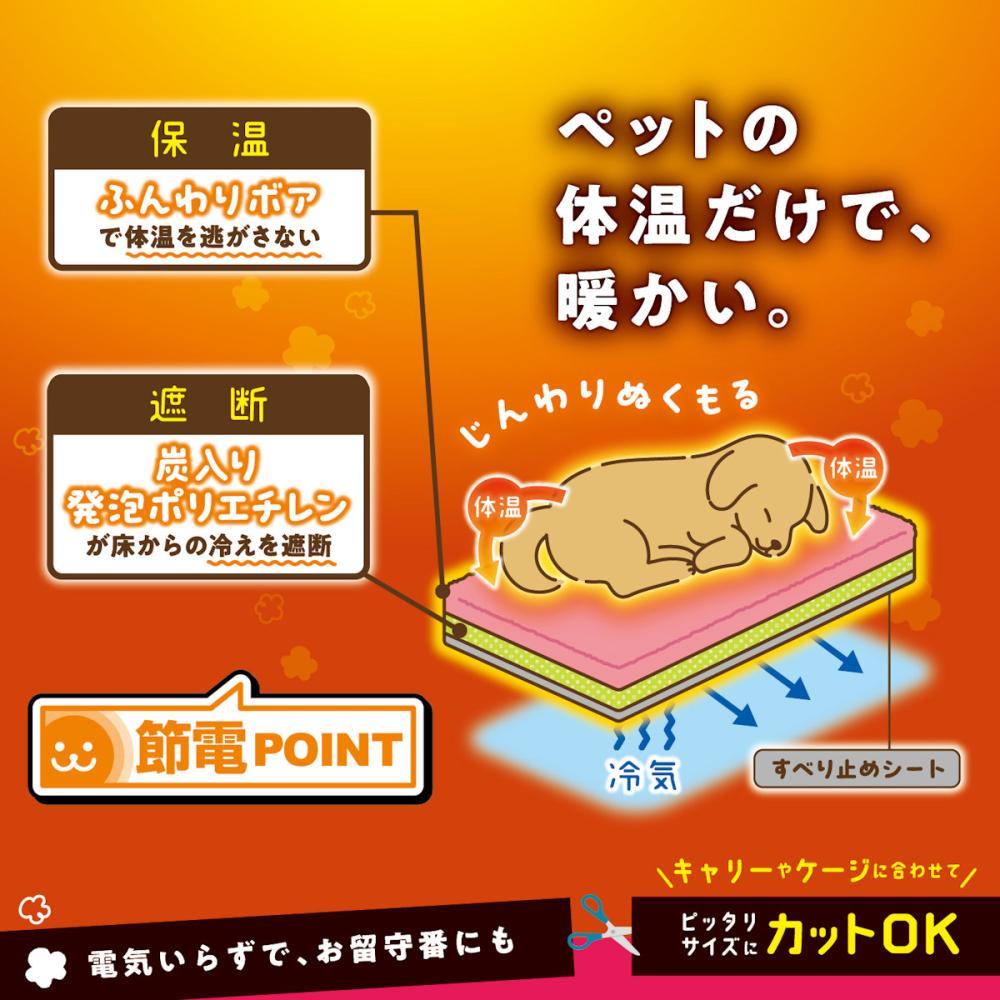 ●ふんわりボアが体温を逃がさず、発泡ポリエチレンが床からの冷えを遮断。
