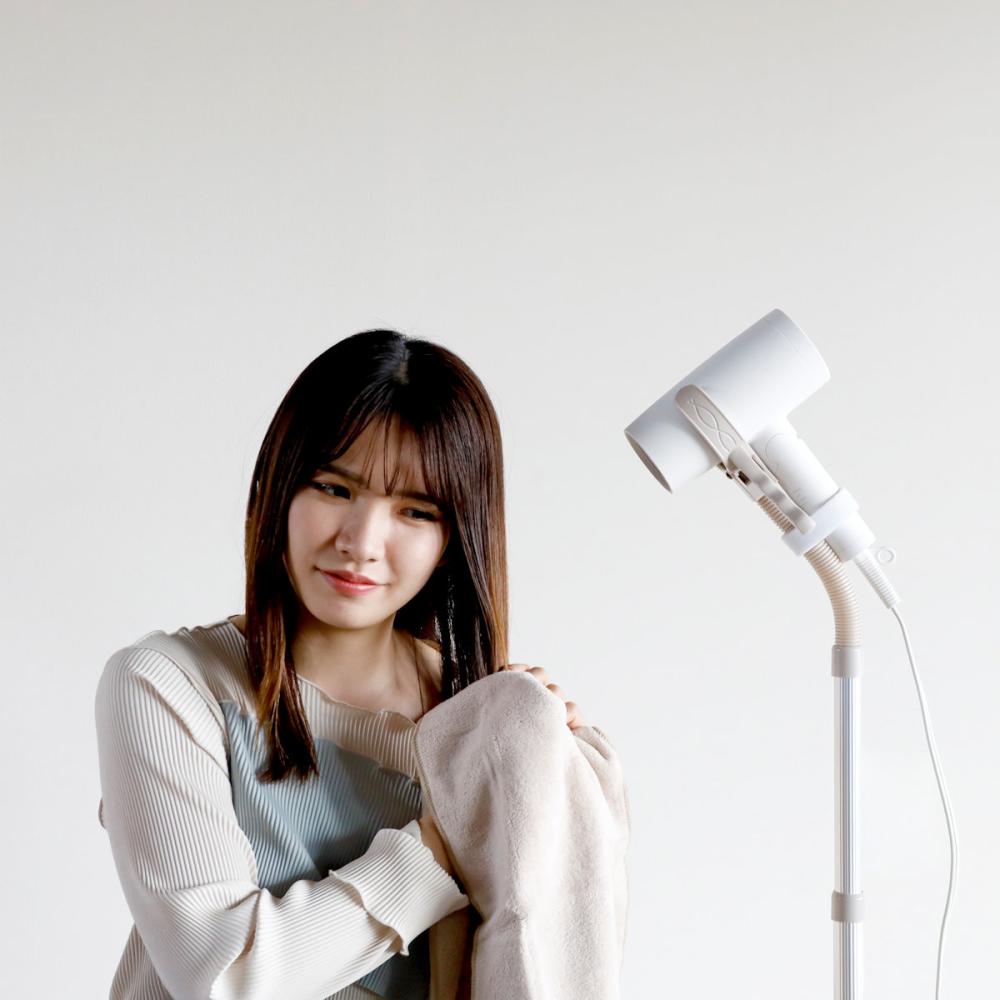 タオルを使ったり、ブラシを使いながらドライヤーが出来るのでヘアセットもらくらくです。 また、スキンケアをしながらドライヤーを使うことが出来るのも女性には嬉しいポイントです。 こどものお風呂後の髪の毛を乾かすときにもとても便利です! 両手が使えるのでタオルドライがしやすく、ドライヤーが苦手なお子様も素早く乾かすことが出来ます。 ペットのトリミング、シャンプー後のドライにも便利です! 動き回りがちなペットも両手が使えるので、素早く乾かすことが出来ます 高さは無段階調節式なので、その時々の使い方に合わせて調節が可能です。