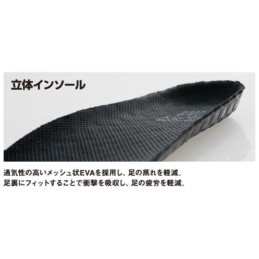●立体インソールが足裏にフィットすることで衝撃を吸収し、足の疲労を軽減します。