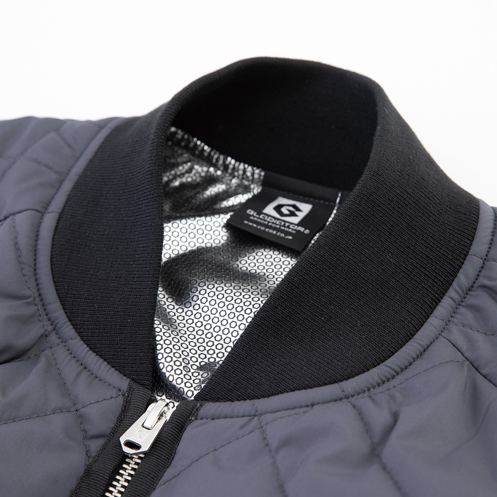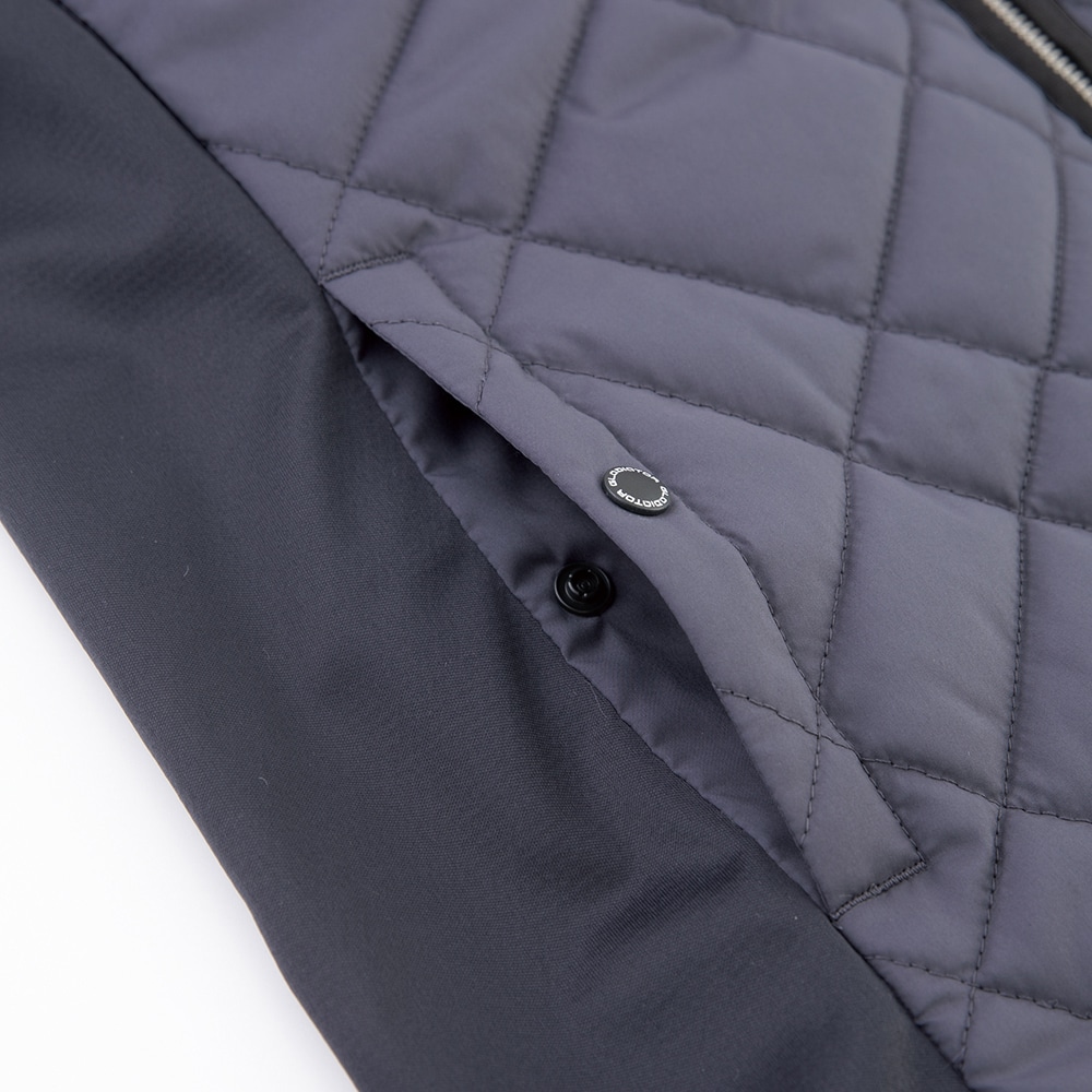 ●素材 表:スムースタフタ 前身裏:タフタ 背裏:アルミプリント 脇:防風ストレッチ ●混率 表地・中綿・裏地:ポリエステル100%