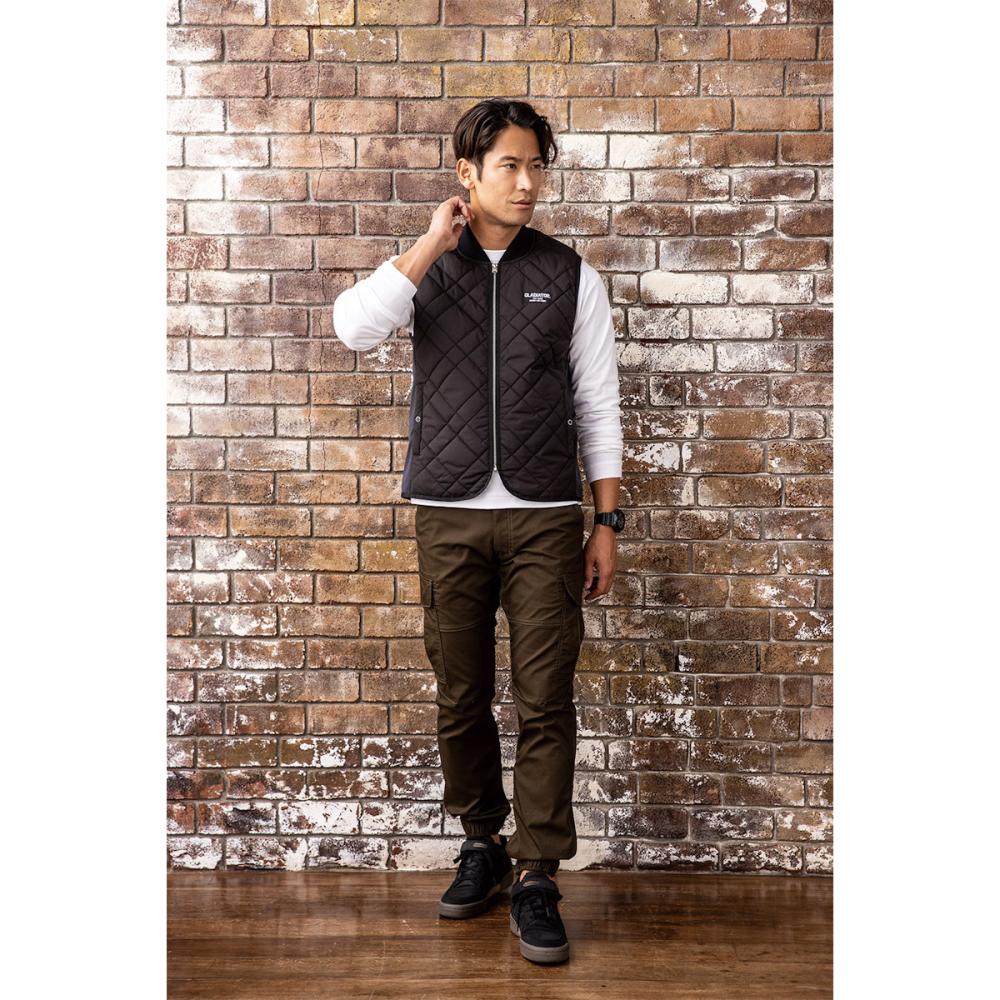 ●素材 表:スムースタフタ 前身裏:タフタ 背裏:アルミプリント 脇:防風ストレッチ ●混率 表地・中綿・裏地:ポリエステル100%