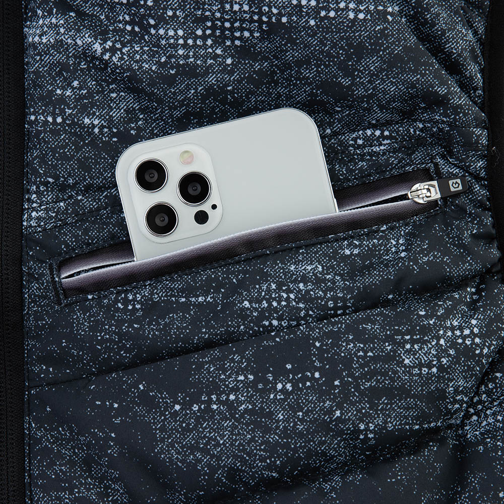 ●背中上部と脇ポケットの計3か所にある電熱シートが背中やお腹、ポケットの中で手も温めることができます。