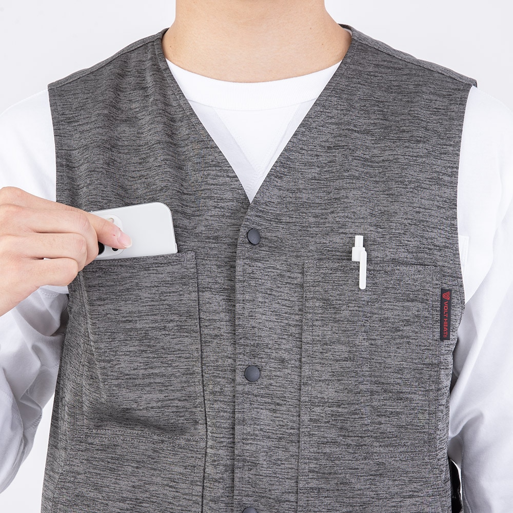 ●背中上部と脇ポケットの計3か所にある電熱シートが背中やお腹、ポケットの中で手も温めることができます。
