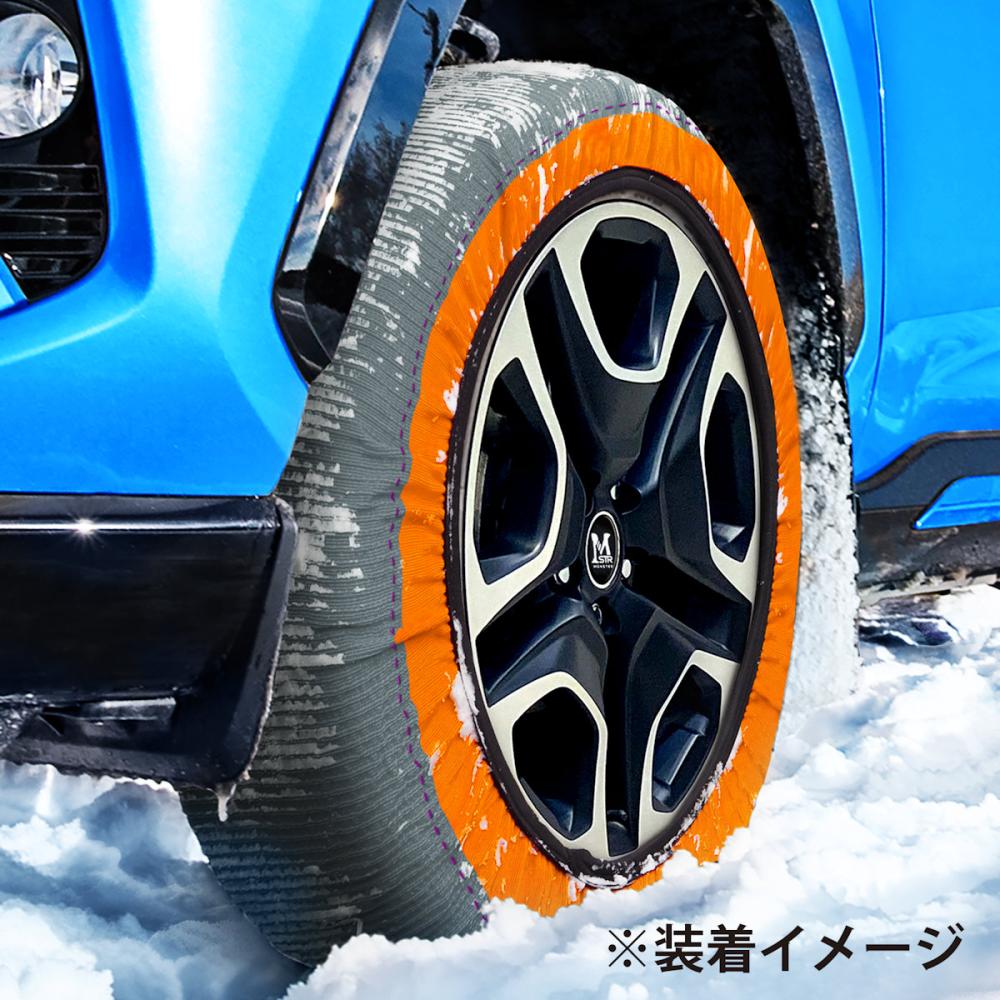 急な降雪時に即対応できる、布製のタイヤチェーンです。 タイヤ1本につき約2分で装着可能。 走行時の騒音・振動が少なく、雪道でも快適にドライブできます。 ジャッキアップなどの特別な作業は不要で、タイヤに被せるだけで誰でも簡単に装着できます。 立体的な凹凸形状の高密度3Dファブリック仕様で耐久性が高く、雪道にしっかり食いつきます。 軽量かつコンパクトで持ち運びしやすく、さらに使用後もサッと収納できる袋付きで車内を汚しません。