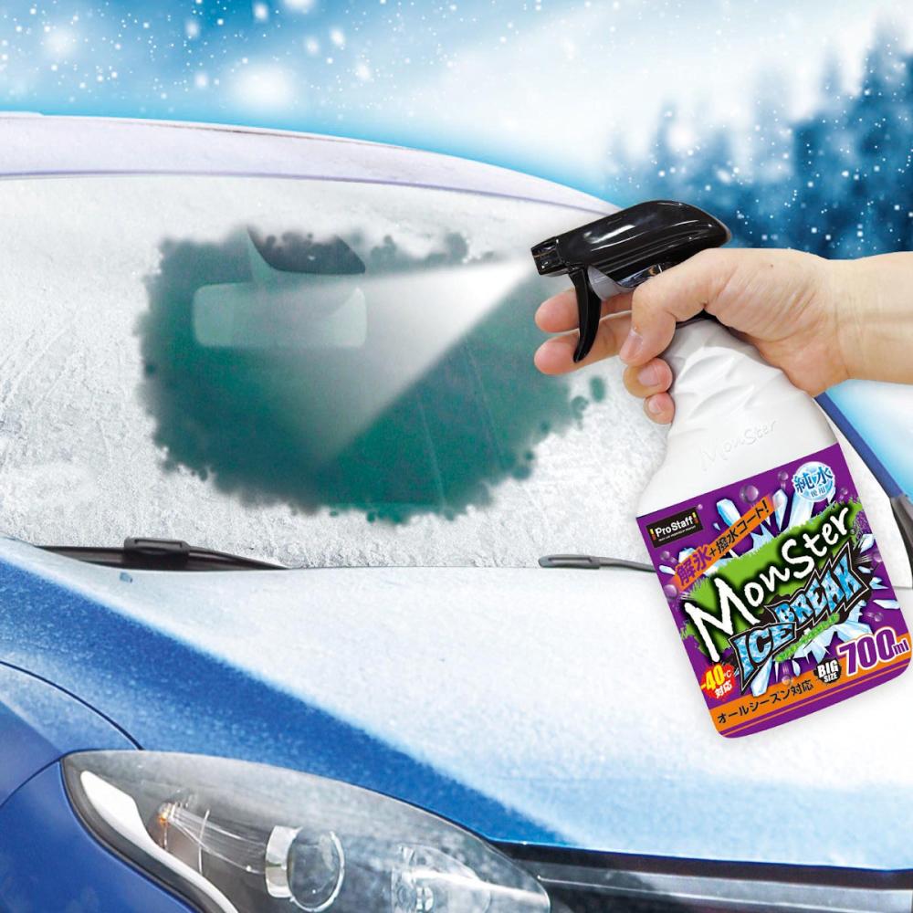 驚異の解氷力と優れた撥水効果を兼ね備えた自動車ガラス用解氷スプレーです。 スプレーするだけで氷や霜に素早く浸透し、瞬時に溶かすことで冬季の運転時の視界を回復します。 さらに、撥水性シリコーンがガラスに密着する事で、水をしっかり弾いて溶けた氷の再凍結を防止。 降雨時の視界もクリアに保ちます。 純水使用により、ギラつきや白残りを抑えてスッキリと仕上がり、大容量700mlで長期間使えます。 また、撥水剤としても使用でき、冬季以外にもオールシーズン活躍します。 これ1本でガラスがクリアに仕上がる安全ドライブの必須アイテムです。 【特長 1】施工済みの撥水コーティングのメンテナンスにも最適です。 【特長 2】ノンガスタイプで使用時にボトルが冷たくならず快適に使えます。