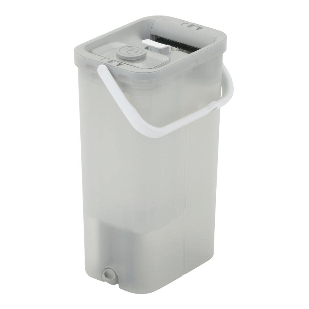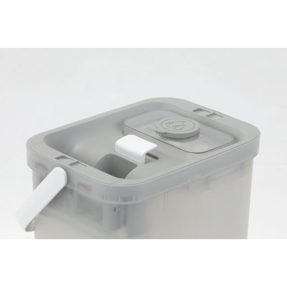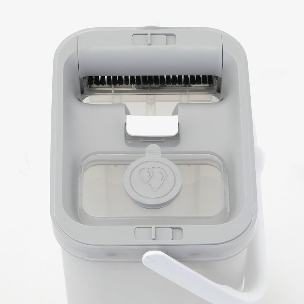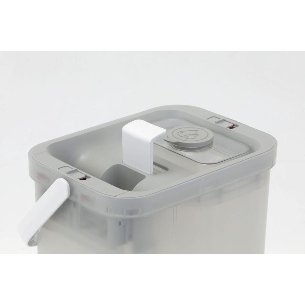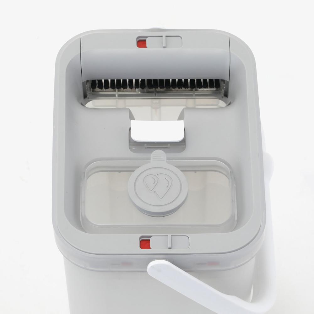 ■注入口と排水口を分けた特殊構造で汚れた水が混ざらず、常にきれいな水でモップを洗える。
