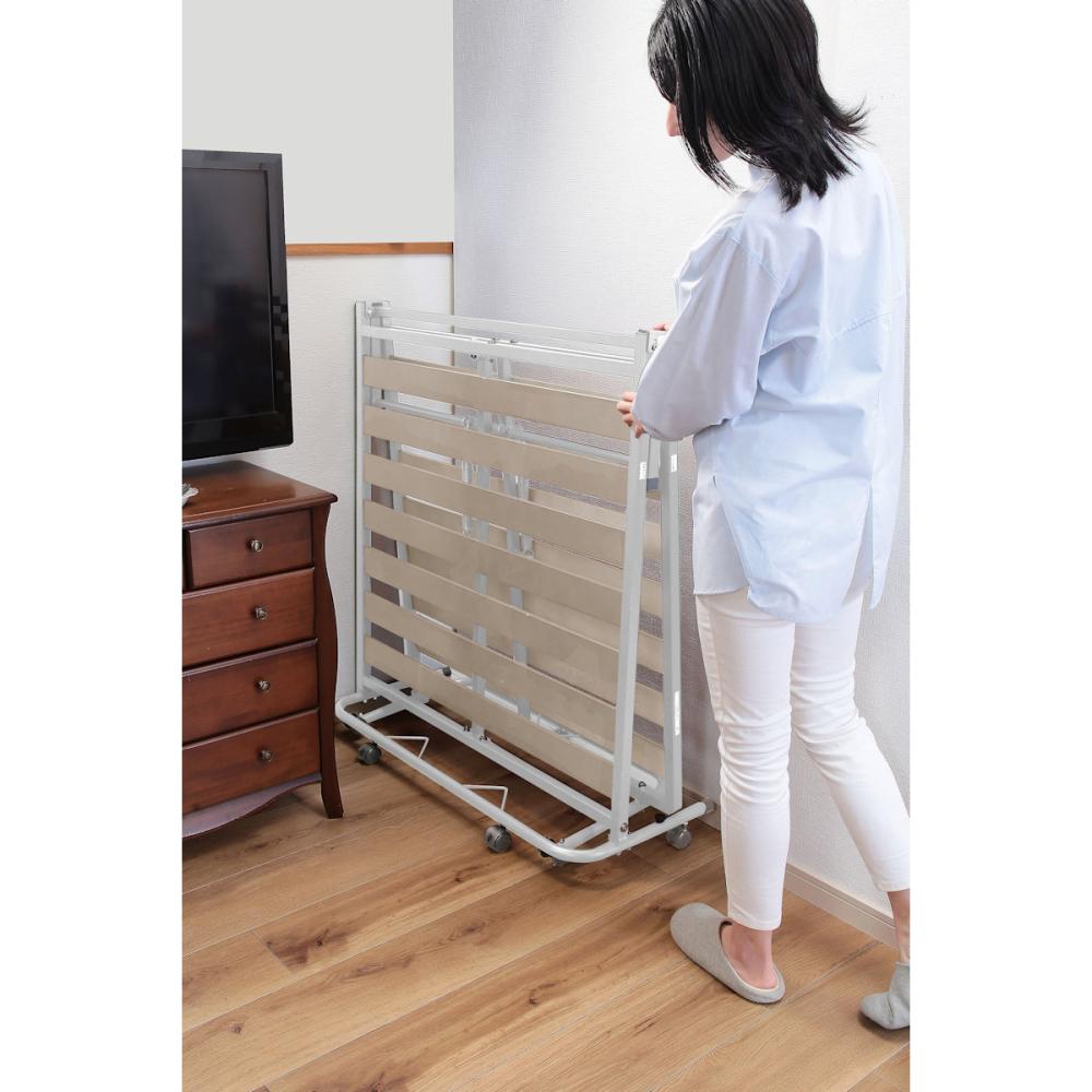 ■折り畳み式ベッドにキャスターが付いて移動も収納も楽ちん!