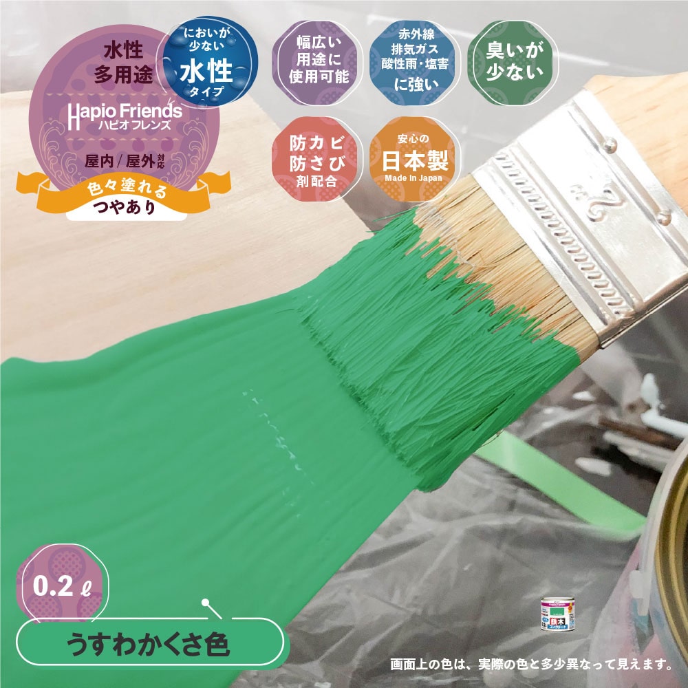 ●紫外線・排気ガス・酸性雨・塩害に強い塗膜を作り、塗装部を長期間保護します。 ●屋内外の木部・鉄部・コンクリート・プラスチックまで幅広い用途に使用できます。 ●防カビ剤配合なので長期間カビの発生を防ぎます。 ●臭いが少なく、乾燥が速く、塗りやすい水性塗料です。 ※水性でも乾燥すると水で流れ落ちることはありません。 ●塗れるもの ・窓枠、格子、羽目板、雨戸、板べい、ドア、ガーデニング用品などの屋内外の木製品 ・門扉、物置、フェンス、電気・機械器具、農機具などの屋内外の鉄製品 ・発泡スチロール、プラスチック(硬質塩ビ、アクリル、ABS)※ポリエチレン、ポリプロピレンなどは除く ・浴室、台所、洗面所、トイレなど屋内のコンクリート・モルタル壁、板壁 ・外かべ(コンクリート、モルタル、サイディング※セラミック系は除く)、ブロック塀 ●塗れないもの ・自動車、バイク、高級家具、ユニットバス、フローリング床、コンクリート床、ビニールかべ紙 ・食器・玩具など口に触れる危険性のある物 ・吸い込みのない木材(プリント合板・デコラ板など化粧板) ・鉄以外の金属(アルミ、ステンレス、メッキ、真ちゅう、銅、ホーローなど)、塩ビ鋼板 ・タイル、陶器、天然石 ・シリコン・フッ素・セラミックなど特殊加工された素材 ・ストーブなど高温部分 ・テーブル天面、荷重が掛かったり、常に衣服が接したり、高温の物を置く椅子・棚 ・釉薬瓦・無釉薬瓦(和瓦などの粘土系瓦)、施釉セメント瓦、コンクリート瓦、乾式洋瓦(モニエル瓦)、シングル系瓦、天然石瓦 ・常に水の浸かる所(プール・浴槽・浴室の床および立ちあがり・池) ●乾燥時間 20℃:約1時間(塗り重ねる時は4時間以上) 冬期:約2時間(塗り重ねる時は6時間以上) ●うすめ液・用具の手入れ ・塗料の粘度が高く、塗りにくい時に5%以内の水でうすめてください。※うすめ過ぎは塗装不良の原因となりますのでご注意ください。 ・使い終えた刷毛や用具なども水で洗ってください。