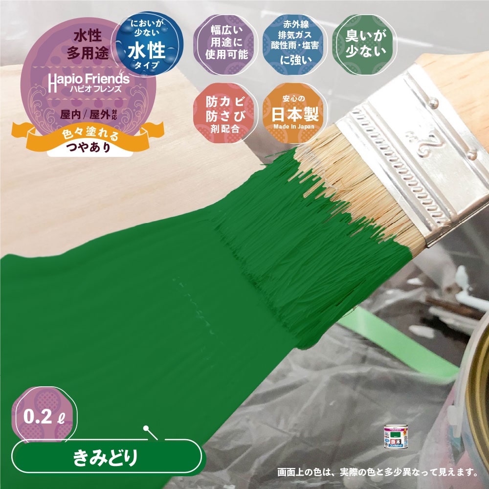 ●紫外線・排気ガス・酸性雨・塩害に強い塗膜を作り、塗装部を長期間保護します。 ●屋内外の木部・鉄部・コンクリート・プラスチックまで幅広い用途に使用できます。 ●防カビ剤配合なので長期間カビの発生を防ぎます。 ●臭いが少なく、乾燥が速く、塗りやすい水性塗料です。 ※水性でも乾燥すると水で流れ落ちることはありません。 ●塗れるもの ・窓枠、格子、羽目板、雨戸、板べい、ドア、ガーデニング用品などの屋内外の木製品 ・門扉、物置、フェンス、電気・機械器具、農機具などの屋内外の鉄製品 ・発泡スチロール、プラスチック(硬質塩ビ、アクリル、ABS)※ポリエチレン、ポリプロピレンなどは除く ・浴室、台所、洗面所、トイレなど屋内のコンクリート・モルタル壁、板壁 ・外かべ(コンクリート、モルタル、サイディング※セラミック系は除く)、ブロック塀 ●塗れないもの ・自動車、バイク、高級家具、ユニットバス、フローリング床、コンクリート床、ビニールかべ紙 ・食器・玩具など口に触れる危険性のある物 ・吸い込みのない木材(プリント合板・デコラ板など化粧板) ・鉄以外の金属(アルミ、ステンレス、メッキ、真ちゅう、銅、ホーローなど)、塩ビ鋼板 ・タイル、陶器、天然石 ・シリコン・フッ素・セラミックなど特殊加工された素材 ・ストーブなど高温部分 ・テーブル天面、荷重が掛かったり、常に衣服が接したり、高温の物を置く椅子・棚 ・釉薬瓦・無釉薬瓦(和瓦などの粘土系瓦)、施釉セメント瓦、コンクリート瓦、乾式洋瓦(モニエル瓦)、シングル系瓦、天然石瓦 ・常に水の浸かる所(プール・浴槽・浴室の床および立ちあがり・池) ●乾燥時間 20℃:約1時間(塗り重ねる時は4時間以上) 冬期:約2時間(塗り重ねる時は6時間以上) ●うすめ液・用具の手入れ ・塗料の粘度が高く、塗りにくい時に5%以内の水でうすめてください。※うすめ過ぎは塗装不良の原因となりますのでご注意ください。 ・使い終えた刷毛や用具なども水で洗ってください。