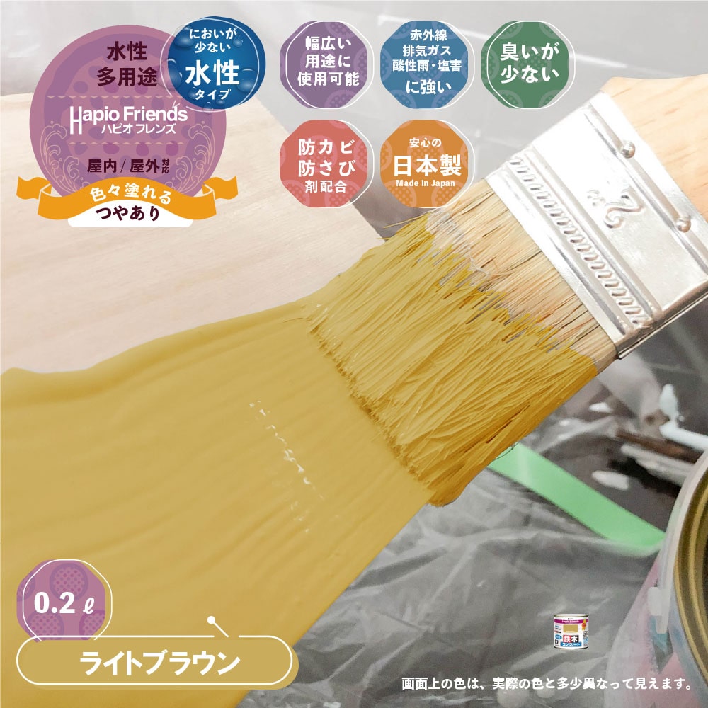●紫外線・排気ガス・酸性雨・塩害に強い塗膜を作り、塗装部を長期間保護します。 ●屋内外の木部・鉄部・コンクリート・プラスチックまで幅広い用途に使用できます。 ●防カビ剤配合なので長期間カビの発生を防ぎます。 ●臭いが少なく、乾燥が速く、塗りやすい水性塗料です。 ※水性でも乾燥すると水で流れ落ちることはありません。 ●塗れるもの ・窓枠、格子、羽目板、雨戸、板べい、ドア、ガーデニング用品などの屋内外の木製品 ・門扉、物置、フェンス、電気・機械器具、農機具などの屋内外の鉄製品 ・発泡スチロール、プラスチック(硬質塩ビ、アクリル、ABS)※ポリエチレン、ポリプロピレンなどは除く ・浴室、台所、洗面所、トイレなど屋内のコンクリート・モルタル壁、板壁 ・外かべ(コンクリート、モルタル、サイディング※セラミック系は除く)、ブロック塀 ●塗れないもの ・自動車、バイク、高級家具、ユニットバス、フローリング床、コンクリート床、ビニールかべ紙 ・食器・玩具など口に触れる危険性のある物 ・吸い込みのない木材(プリント合板・デコラ板など化粧板) ・鉄以外の金属(アルミ、ステンレス、メッキ、真ちゅう、銅、ホーローなど)、塩ビ鋼板 ・タイル、陶器、天然石 ・シリコン・フッ素・セラミックなど特殊加工された素材 ・ストーブなど高温部分 ・テーブル天面、荷重が掛かったり、常に衣服が接したり、高温の物を置く椅子・棚 ・釉薬瓦・無釉薬瓦(和瓦などの粘土系瓦)、施釉セメント瓦、コンクリート瓦、乾式洋瓦(モニエル瓦)、シングル系瓦、天然石瓦 ・常に水の浸かる所(プール・浴槽・浴室の床および立ちあがり・池) ●乾燥時間 20℃:約1時間(塗り重ねる時は4時間以上) 冬期:約2時間(塗り重ねる時は6時間以上) ●うすめ液・用具の手入れ ・塗料の粘度が高く、塗りにくい時に5%以内の水でうすめてください。※うすめ過ぎは塗装不良の原因となりますのでご注意ください。 ・使い終えた刷毛や用具なども水で洗ってください。