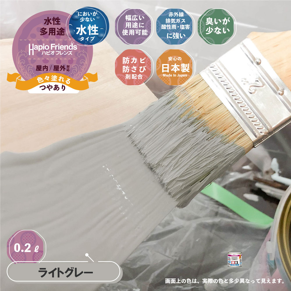 ●紫外線・排気ガス・酸性雨・塩害に強い塗膜を作り、塗装部を長期間保護します。 ●屋内外の木部・鉄部・コンクリート・プラスチックまで幅広い用途に使用できます。 ●防カビ剤配合なので長期間カビの発生を防ぎます。 ●臭いが少なく、乾燥が速く、塗りやすい水性塗料です。 ※水性でも乾燥すると水で流れ落ちることはありません。 ●塗れるもの ・窓枠、格子、羽目板、雨戸、板べい、ドア、ガーデニング用品などの屋内外の木製品 ・門扉、物置、フェンス、電気・機械器具、農機具などの屋内外の鉄製品 ・発泡スチロール、プラスチック(硬質塩ビ、アクリル、ABS)※ポリエチレン、ポリプロピレンなどは除く ・浴室、台所、洗面所、トイレなど屋内のコンクリート・モルタル壁、板壁 ・外かべ(コンクリート、モルタル、サイディング※セラミック系は除く)、ブロック塀 ●塗れないもの ・自動車、バイク、高級家具、ユニットバス、フローリング床、コンクリート床、ビニールかべ紙 ・食器・玩具など口に触れる危険性のある物 ・吸い込みのない木材(プリント合板・デコラ板など化粧板) ・鉄以外の金属(アルミ、ステンレス、メッキ、真ちゅう、銅、ホーローなど)、塩ビ鋼板 ・タイル、陶器、天然石 ・シリコン・フッ素・セラミックなど特殊加工された素材 ・ストーブなど高温部分 ・テーブル天面、荷重が掛かったり、常に衣服が接したり、高温の物を置く椅子・棚 ・釉薬瓦・無釉薬瓦(和瓦などの粘土系瓦)、施釉セメント瓦、コンクリート瓦、乾式洋瓦(モニエル瓦)、シングル系瓦、天然石瓦 ・常に水の浸かる所(プール・浴槽・浴室の床および立ちあがり・池) ●乾燥時間 20℃:約1時間(塗り重ねる時は4時間以上) 冬期:約2時間(塗り重ねる時は6時間以上) ●うすめ液・用具の手入れ ・塗料の粘度が高く、塗りにくい時に5%以内の水でうすめてください。※うすめ過ぎは塗装不良の原因となりますのでご注意ください。 ・使い終えた刷毛や用具なども水で洗ってください。