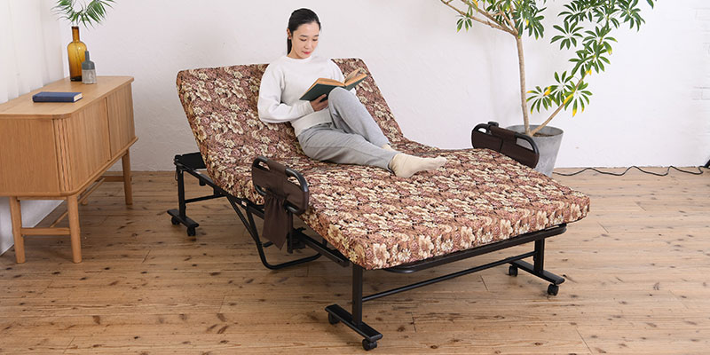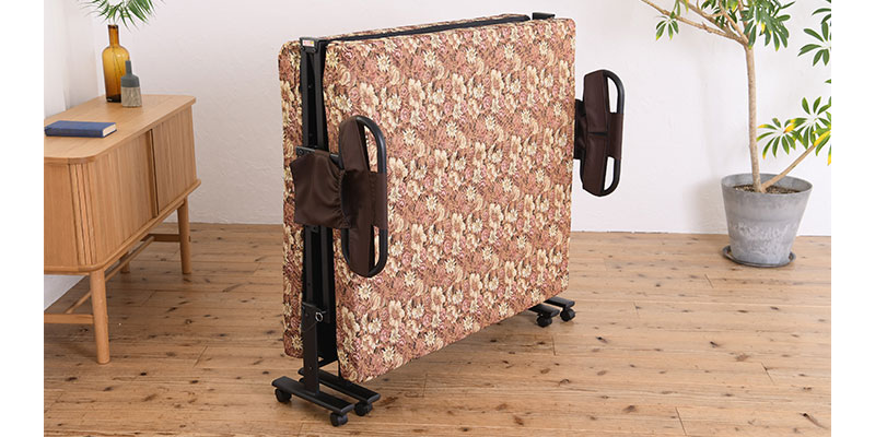 ベッドを畳んだときに固定できるストッパー付き。