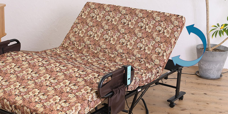 フットアップ機能で背上げの時の体の前ズレを防ぎます。