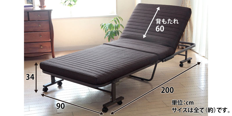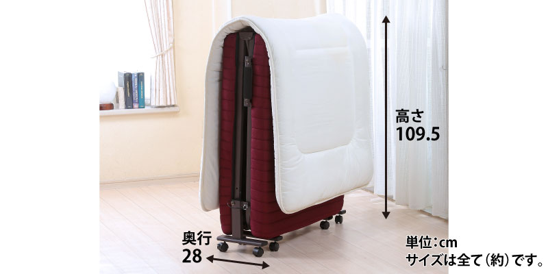 ベッド脇の取っ手を軽く持ち上げるだけで折りたたむことができます。