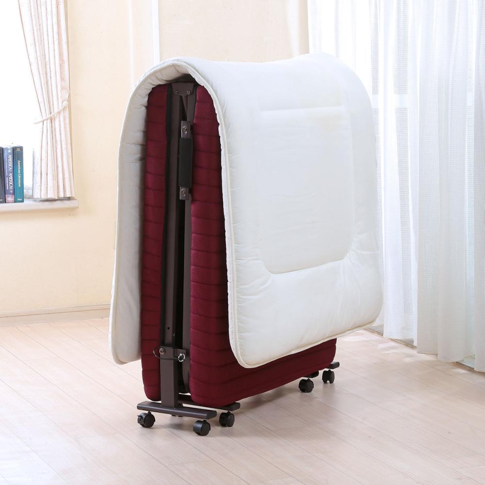 ベッド脇の取っ手を軽く持ち上げるだけで折りたたむことができます。