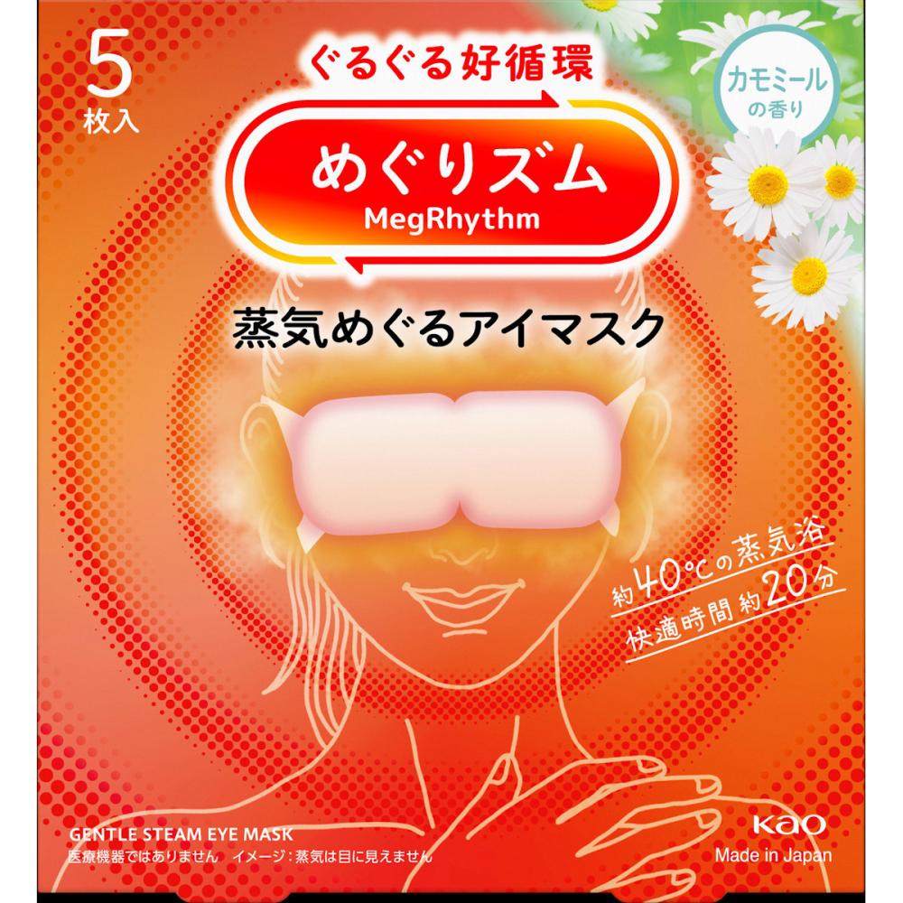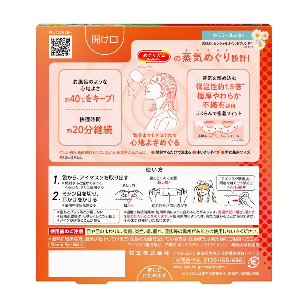 毎日のめぐり習慣に めぐりズムの『蒸気めぐり設計』!気分までときほぐれて心地よさめぐる。 アイマスク:お風呂のような心地よさ約40℃の蒸気浴 快適時間約20分。蒸気を溜め込む保温性 約1.5倍※極厚やわらか不織布採用。顔の凹凸に密着フィット。忙しい日々、働き続けた目に。