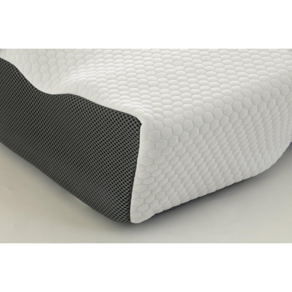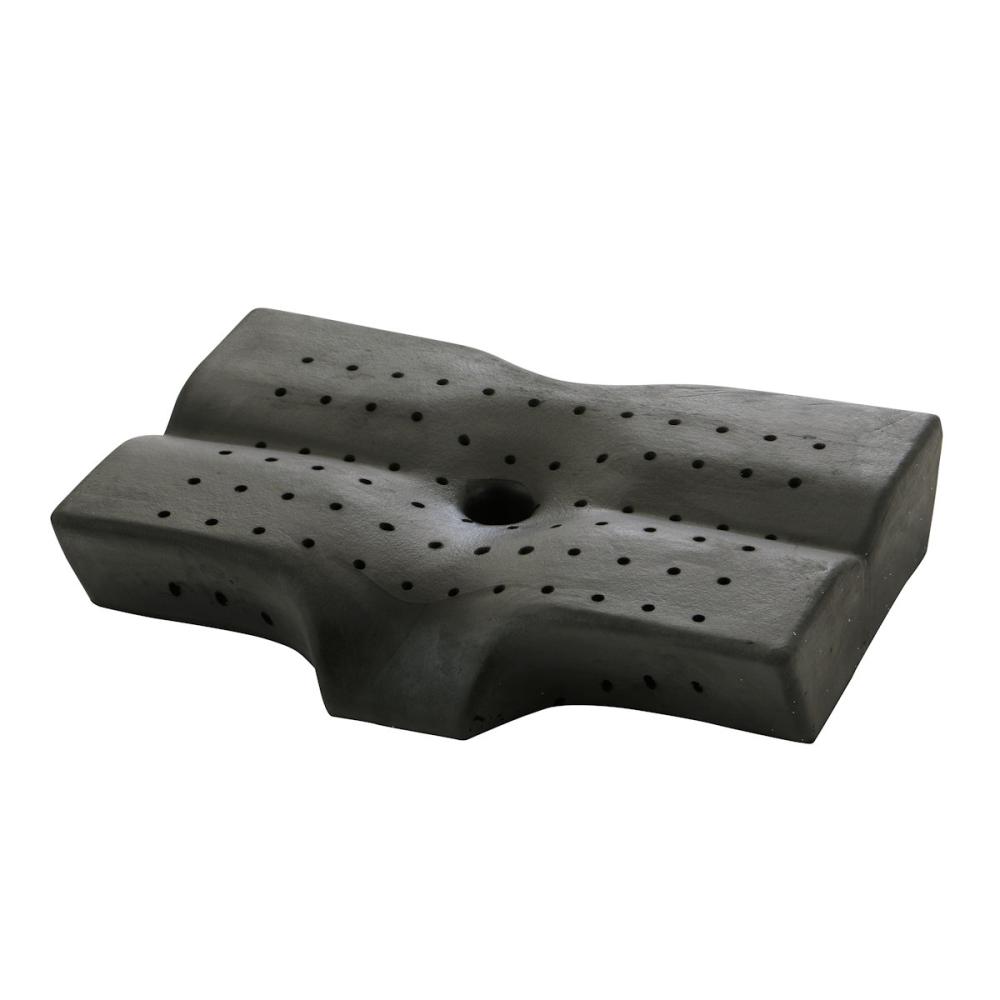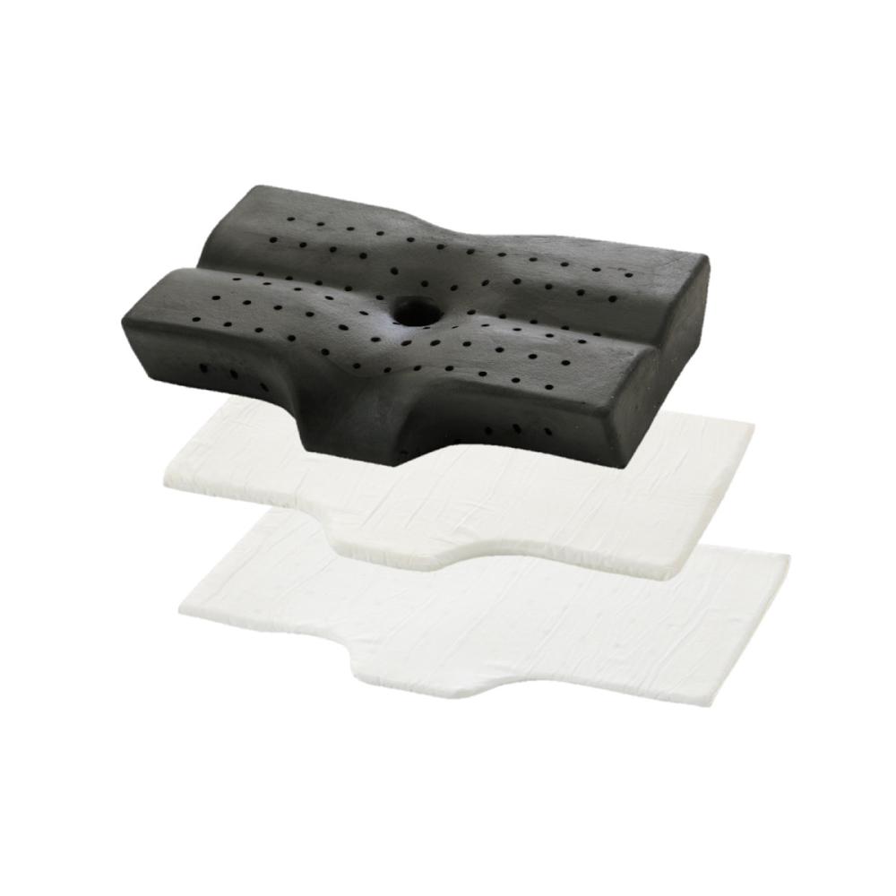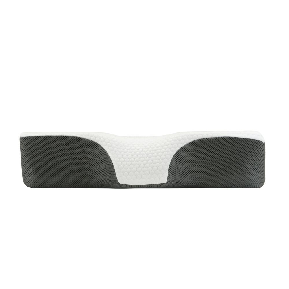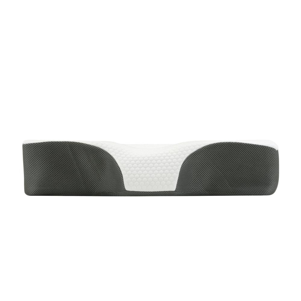 枕の中心部の丸い窪みと、頚椎を支える傾斜によって頭と首を安定して支えます。