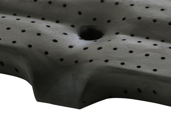■ウレタンフォームに通気孔をもうけることでムレを軽減。さらに、本体には消臭効果のある備長炭を配合。