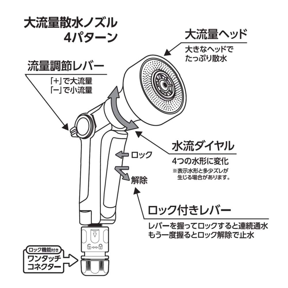 ●先端を回すと変わる水流は4パターン。