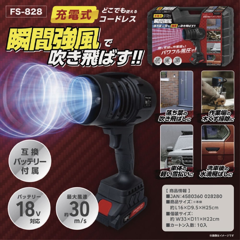 ・商品内容:ブロワ本体、付属バッテリー(18V)、充電用ACアダプター 各1