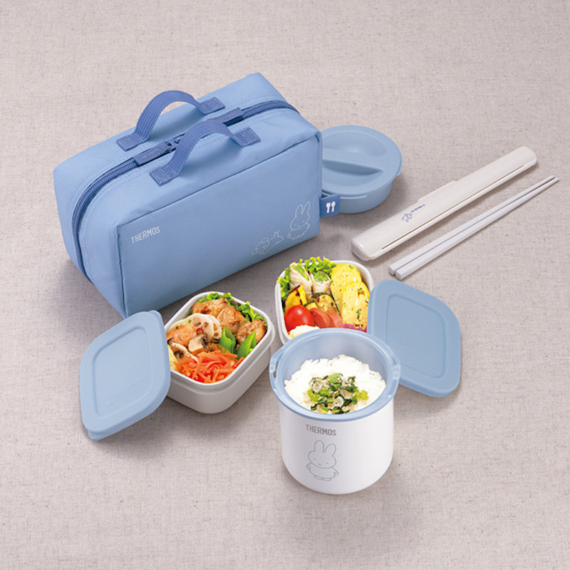 ■ボトルと一緒に使いたくなるデザイン!(同時期発売JNL/JBUと同じデザインテイスト) ■「ごはん容器+おかず容器×2個+ハシ/ハシケース」のランチセット ■ごはん容器用の保温ケースで、ランチタイムまでごはんが温かい