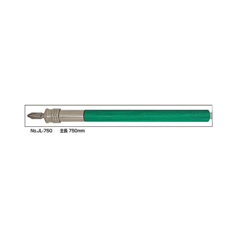 ●先端ビットがワンタッチ方式でビットの取替えが便利です。 ●板金・軽天・内装作業などの足場が組めず手の届かない所、また狭くて手が入らない所などに最適 ●差込口径:6.35mm ●全長:750mm ●差込角:6.35mm