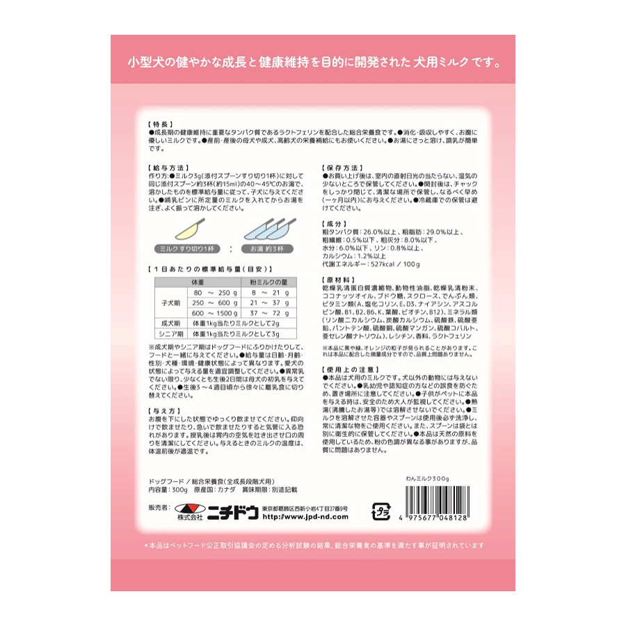 原材料・成分:乾燥乳清蛋白質濃縮物・動物性油脂・乾燥乳清粉末・ココナッツオイル・ブドウ糖・スクロース・でんぷん類・ビタミン類(A・塩化コリン・E・D3・ナイアシン・あすこルビン酸・B1・B2・B6・K・葉酸・ビオチン・B12)・ミネラル類(リン酸二カルシウム・炭酸カルシウム・硫酸鉄・硫酸亜鉛・パントテン酸・硫酸銅・硫酸マンガン・硫酸コバルト・亜セレン酸ナトリウム)・レシチン・香料・ラクトフェリン