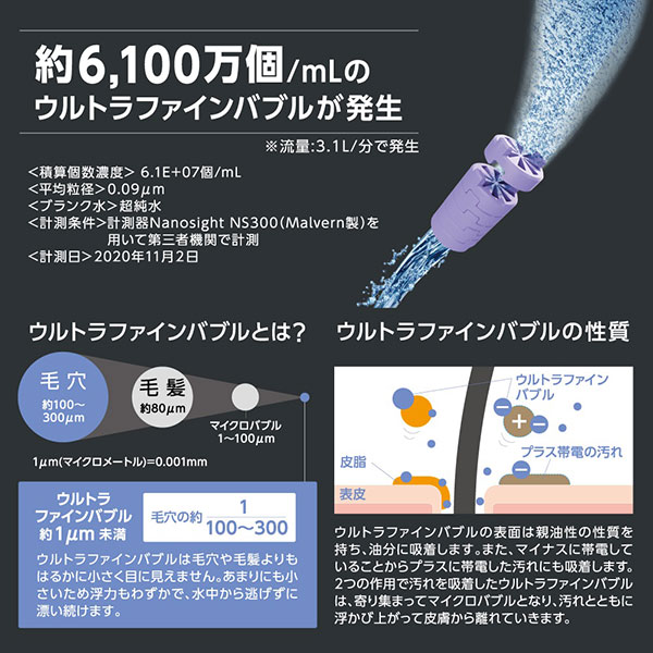 【シャワーヘッド:PS3136-81XA-CDP】約6,100万個/mLのウルトラファインバブルが発生