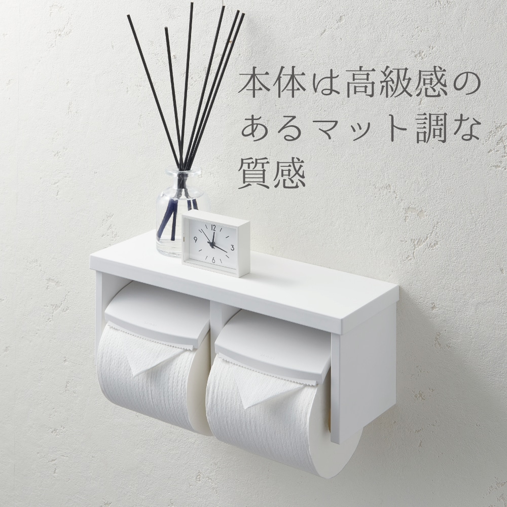 ぺーパーを2つ収納できるダブルタイプ。ペーパーの減りが早い大家族や在宅時間の長いご家庭にもおすすめです。シングルロールとダブルロールの使い分けや、ストックとしてご使用いただけます。