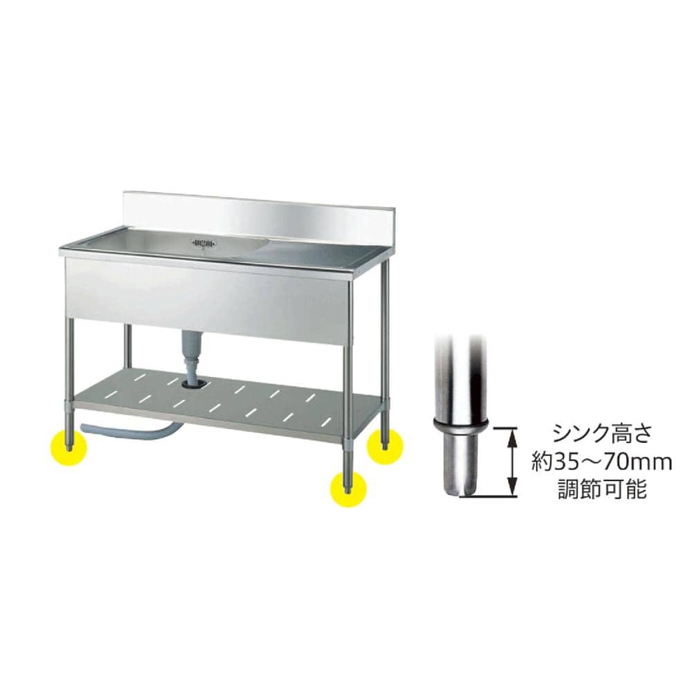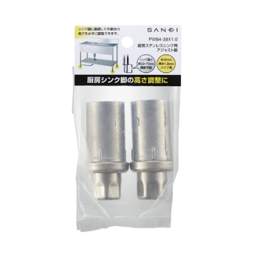 シンクの高さを約35~70mm調整可能。パイプ径38mm厚み1.2mmにご利用いただけます。