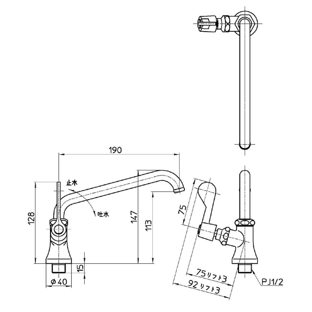 レバーハンドルで90度で吐水・止水ができ、簡単に操作ができます。