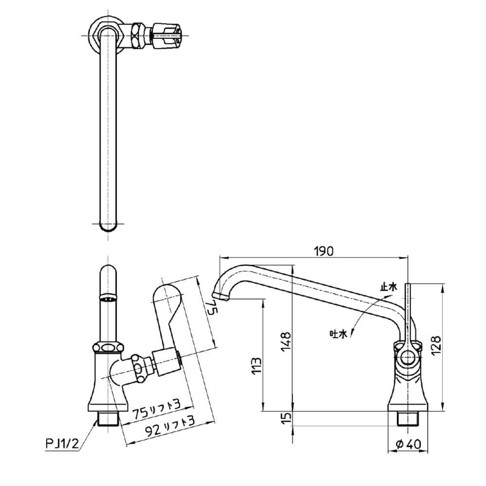 取付サイズ:取付穴径:23~27 取付ネジ径:PJ1/2