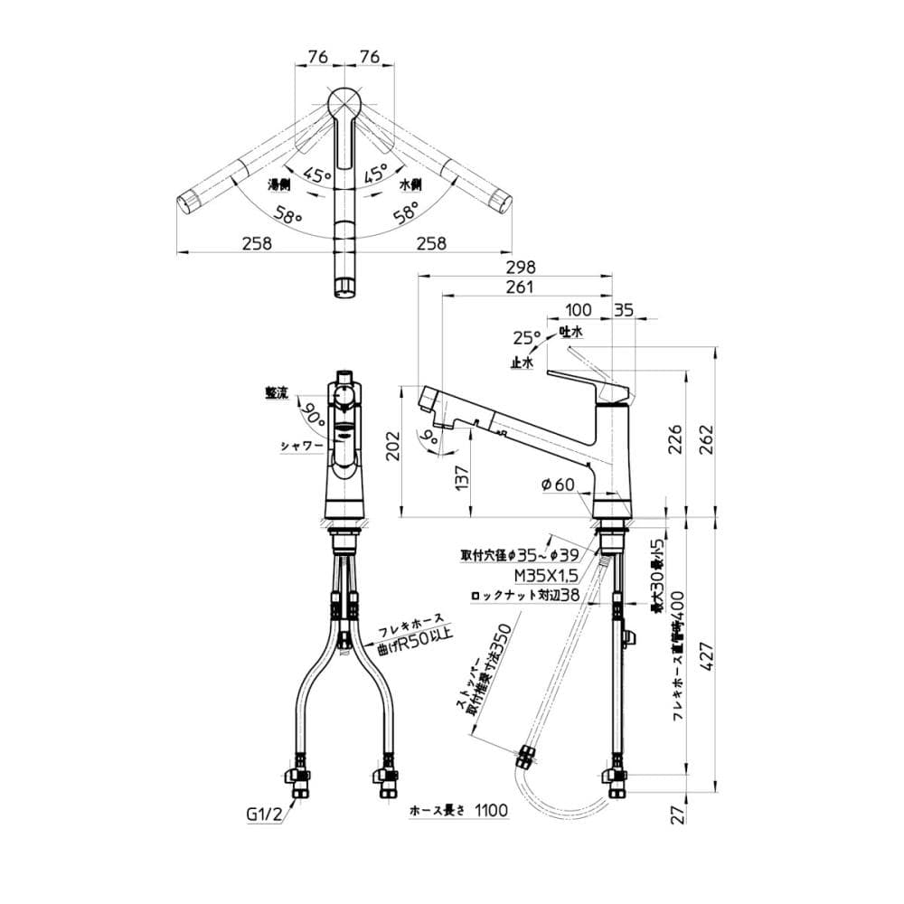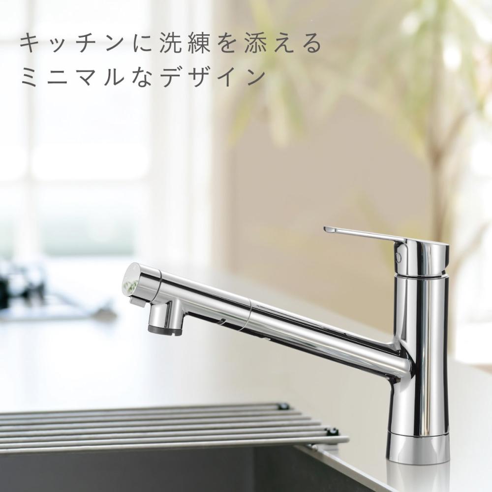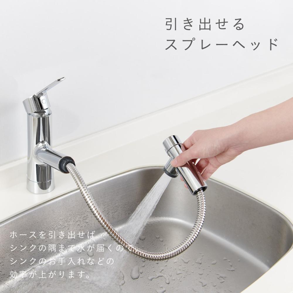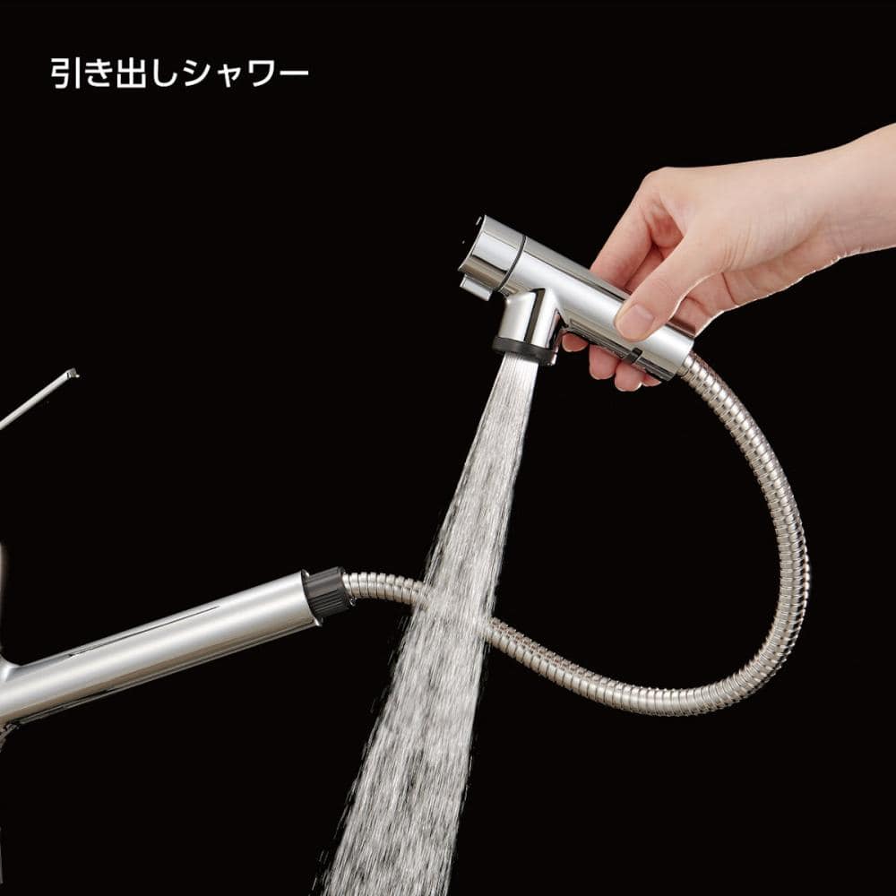 ホース引き出し:ホースを引き出せばシンクの隅々まで水が届くので、お手入れなどの効率アップ。