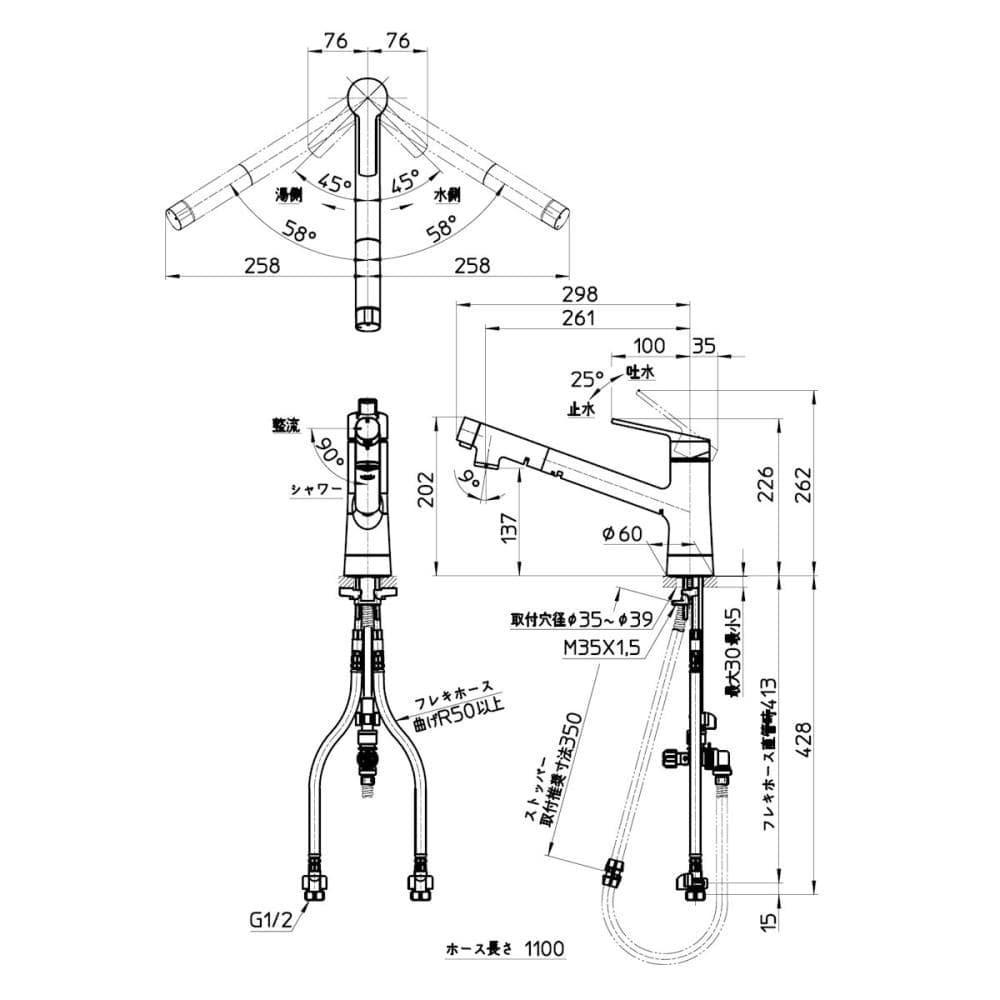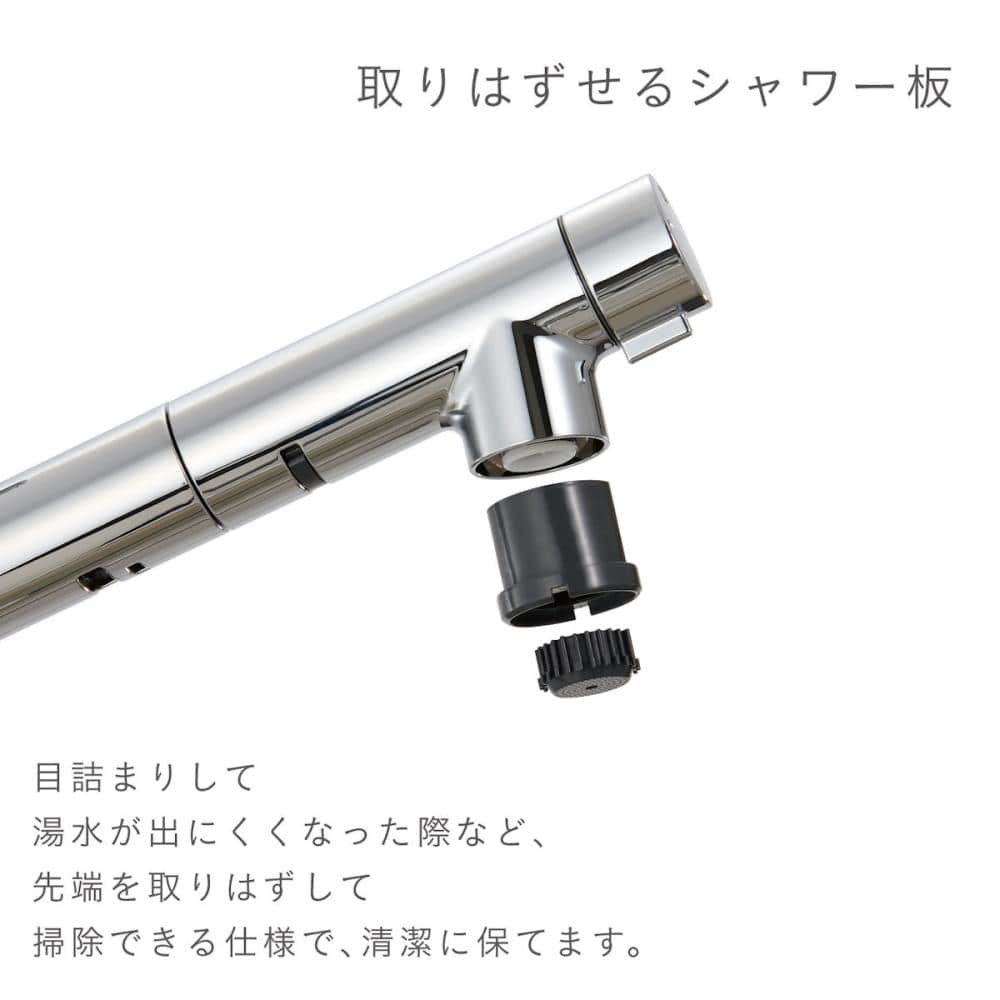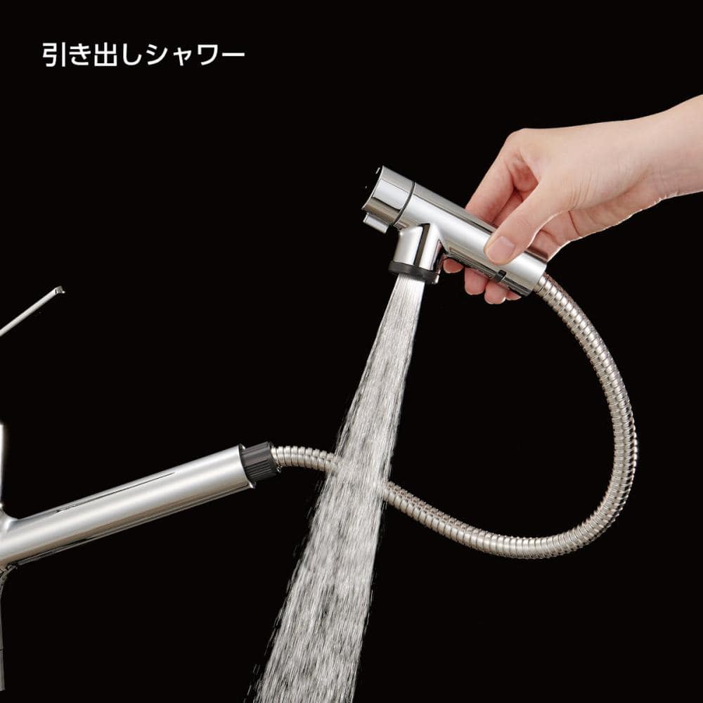 ホース引き出し:ホースを引き出せばシンクの隅々まで水が届くので、お手入れなどの効率アップ。