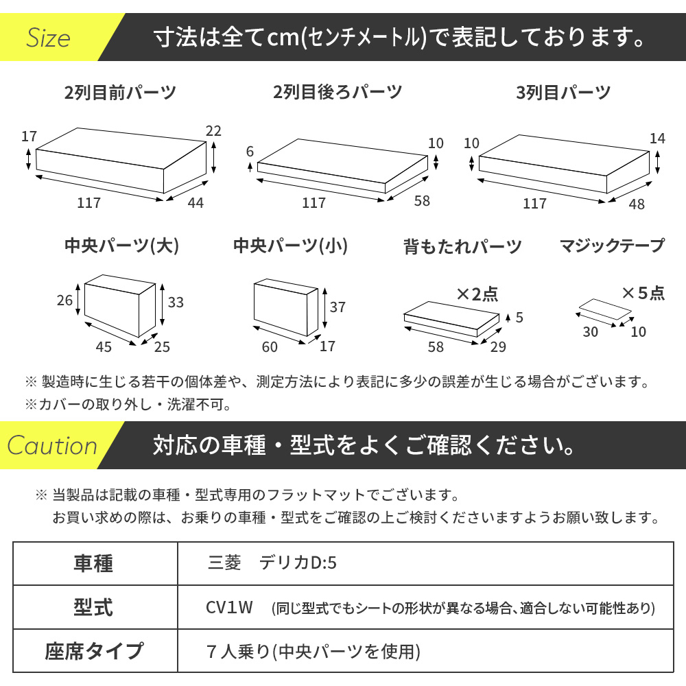 三菱 デリカ(d5)7人乗り用のフラットマットレスです。
