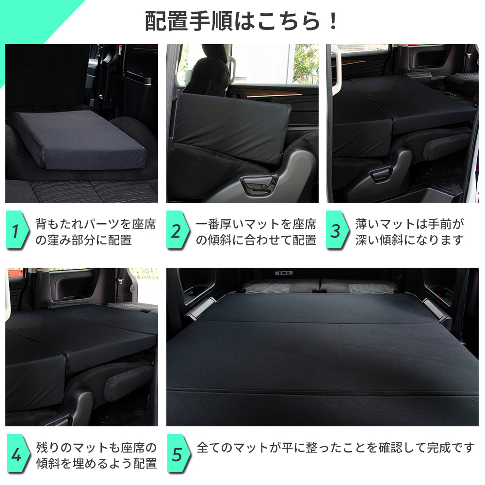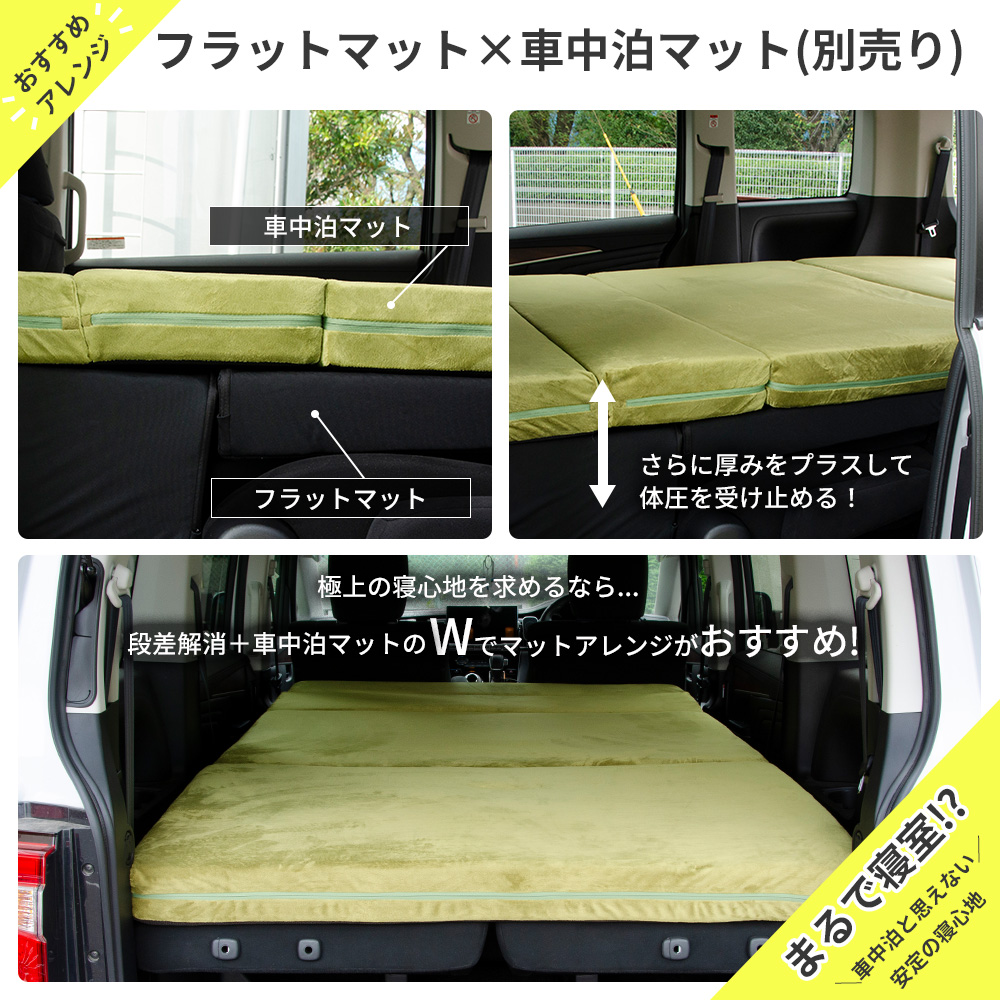 ■シートを倒したときにできる凸凹にフィットしてくれるので、マットやシートをフラットに敷くことができ、快適な睡眠をとることができます。