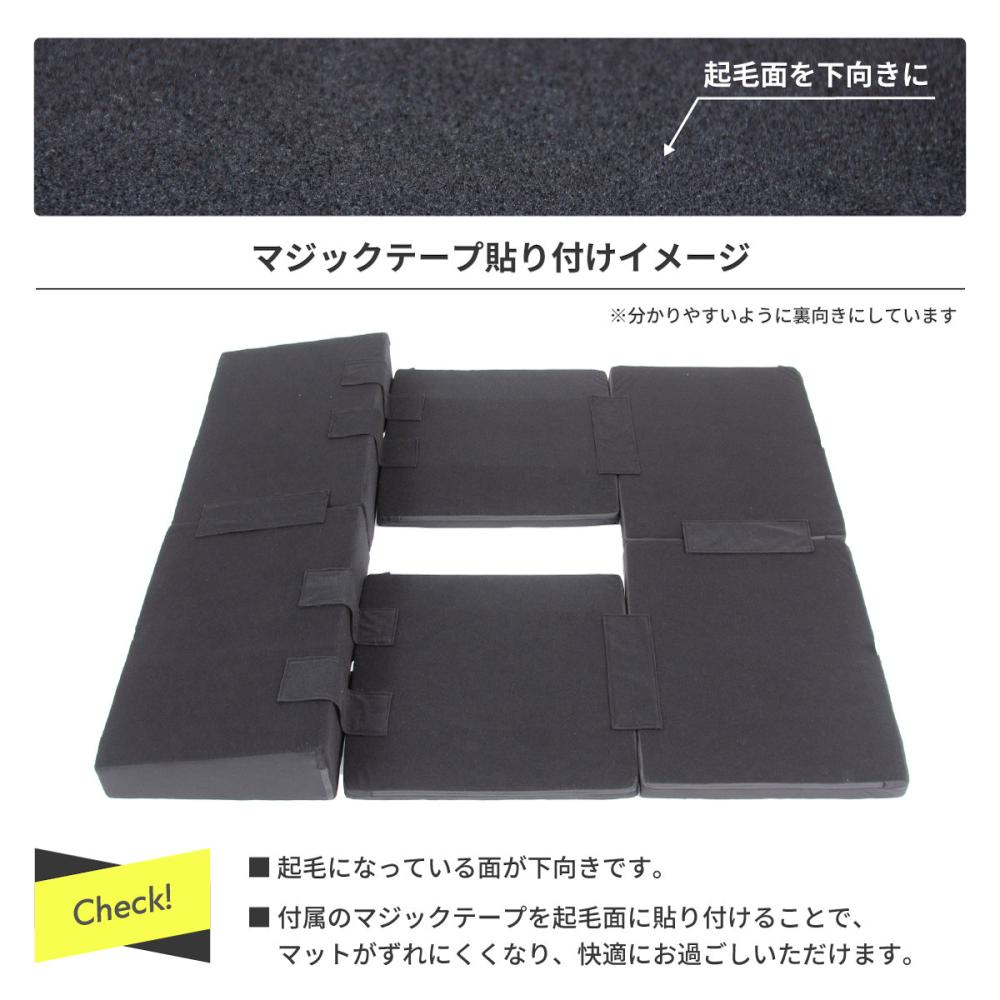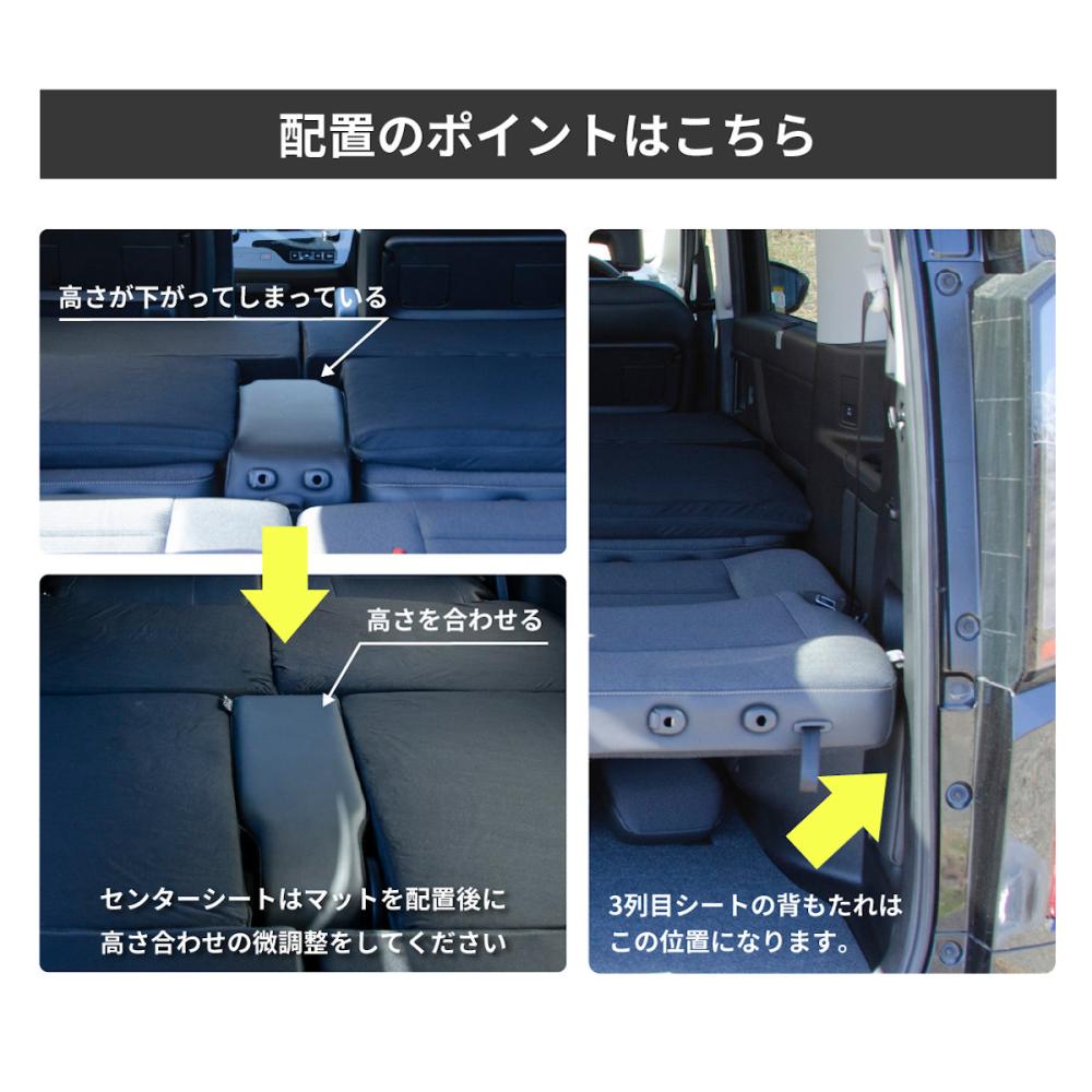 ■シートを倒したときにできる凸凹にフィットしてくれるので、マットやシートをフラットに敷くことができ、快適な睡眠をとることができます。