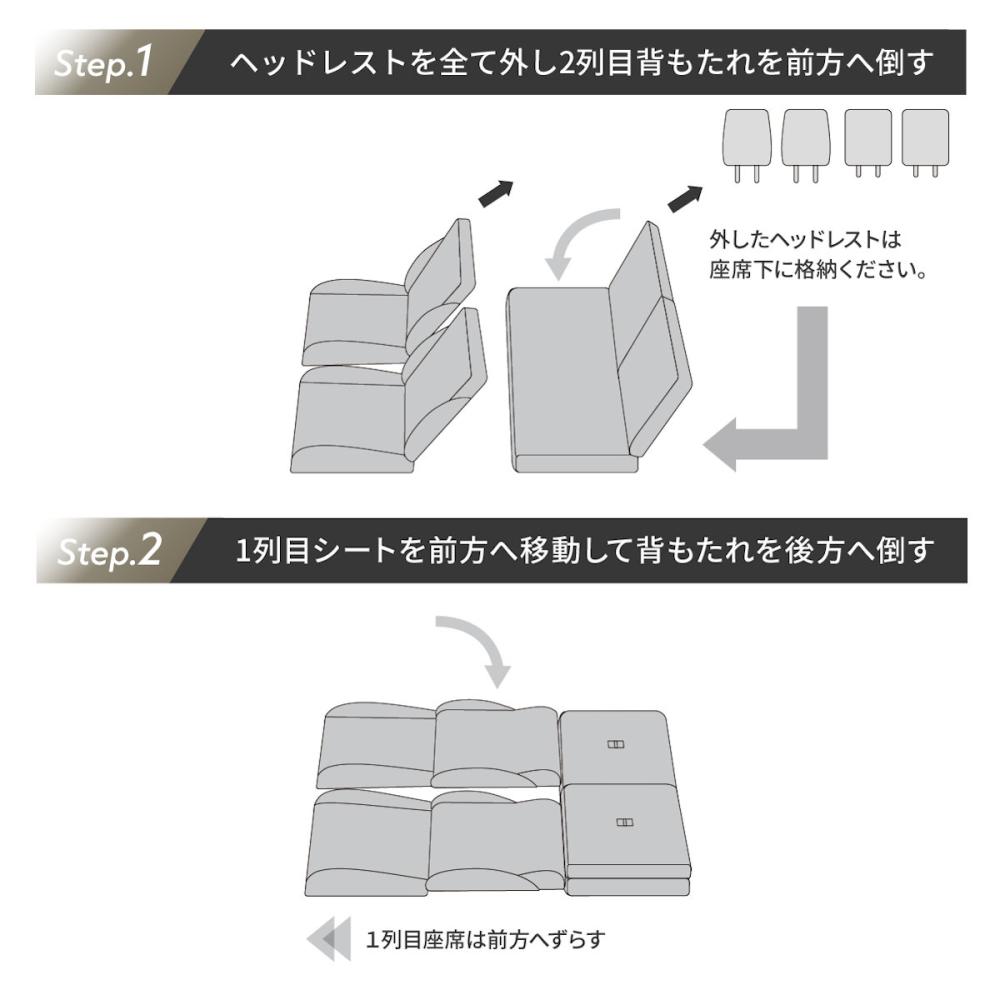 ■シートを倒したときにできる凸凹にフィットしてくれるので、マットやシートをフラットに敷くことができ、快適な睡眠をとることができます。