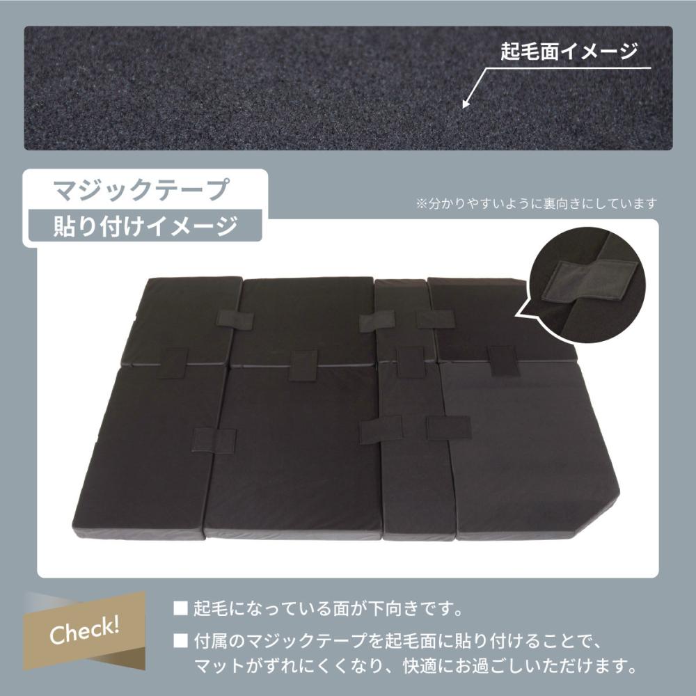 ■シートを倒したときにできる凸凹にフィットしてくれるので、マットやシートをフラットに敷くことができ、快適な睡眠をとることができます。